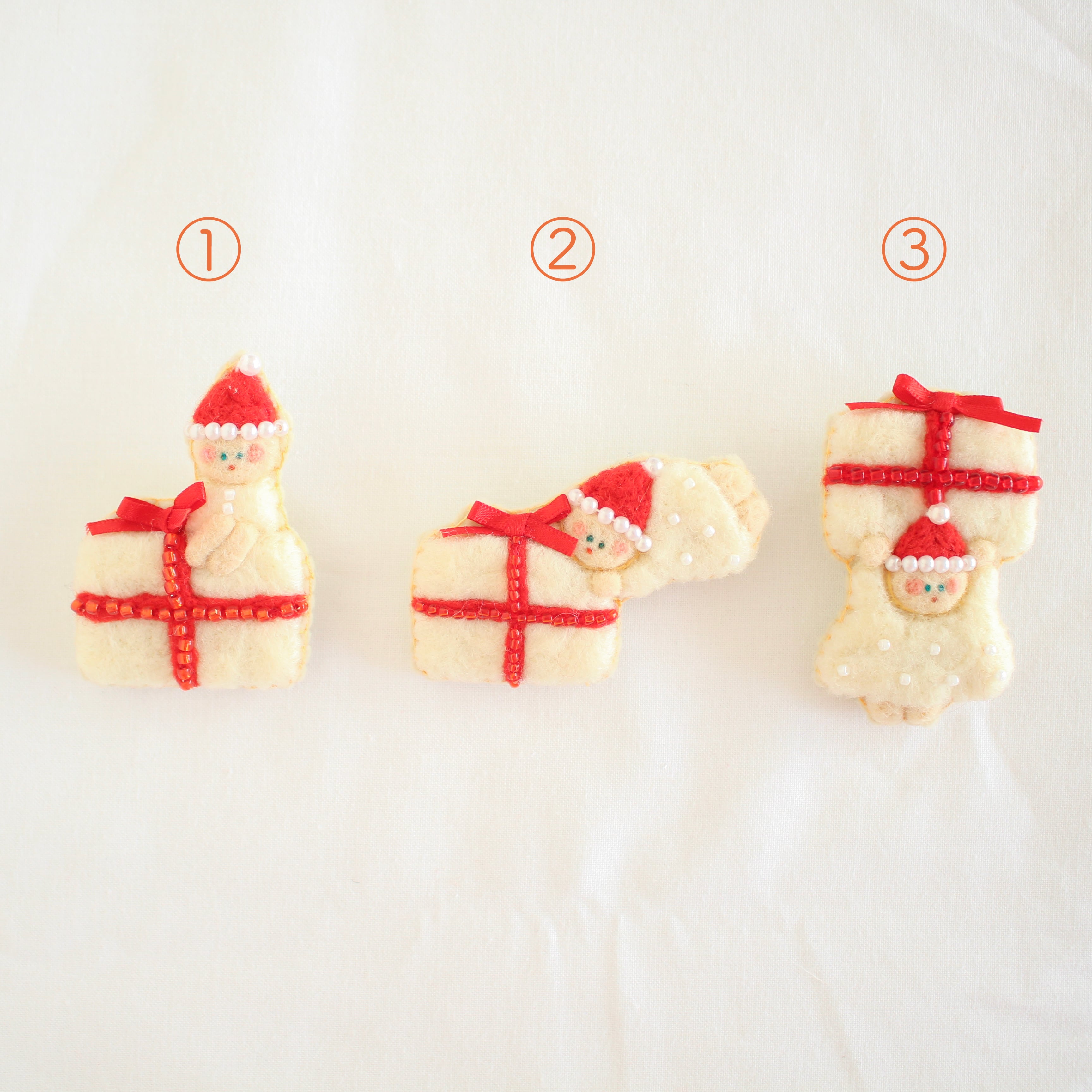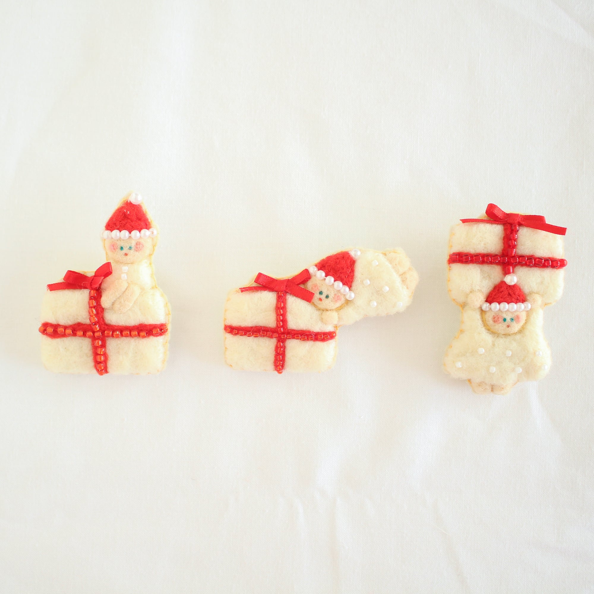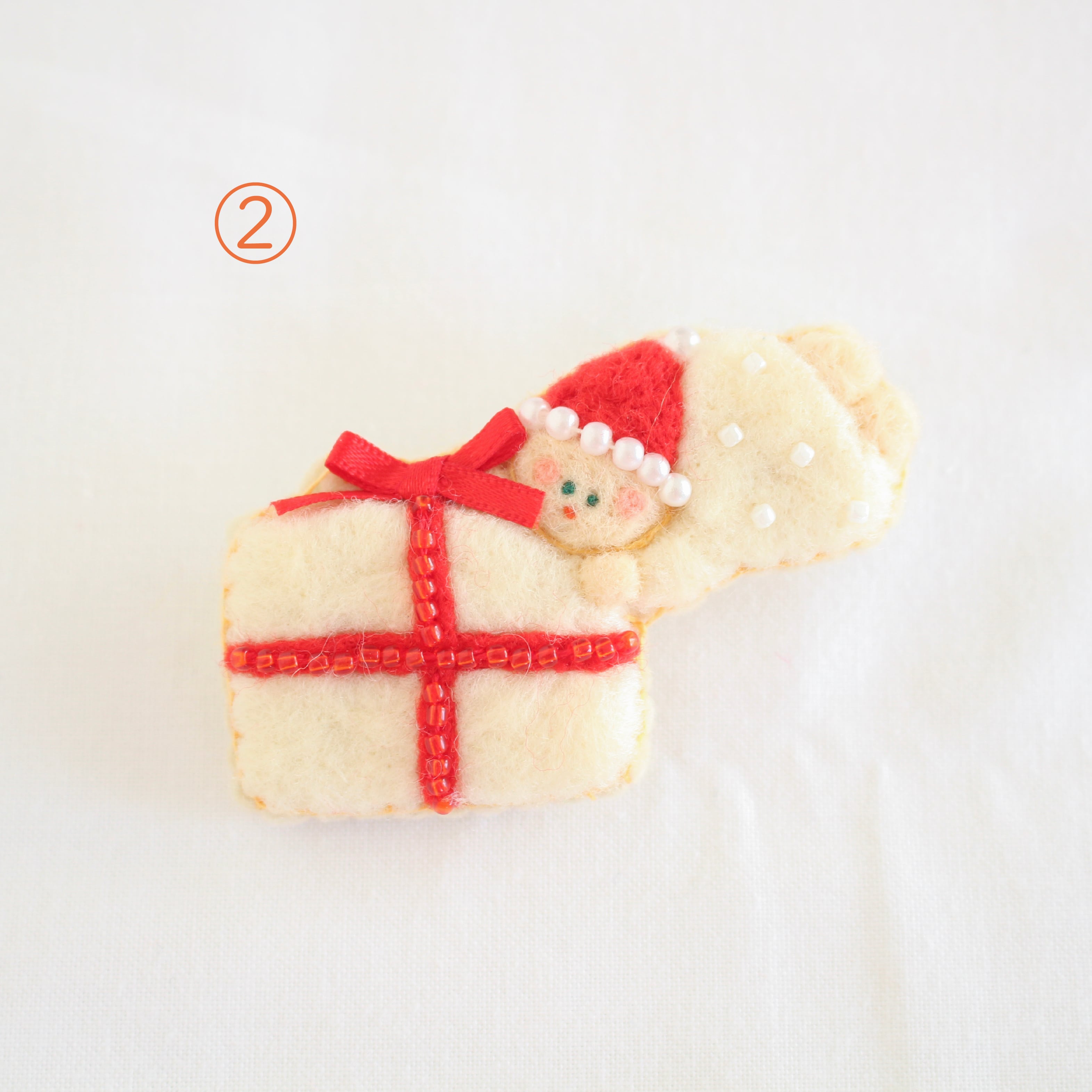 期間限定でプレゼントをはこぶサンタのようせいちゃんbroochを制作しました♪