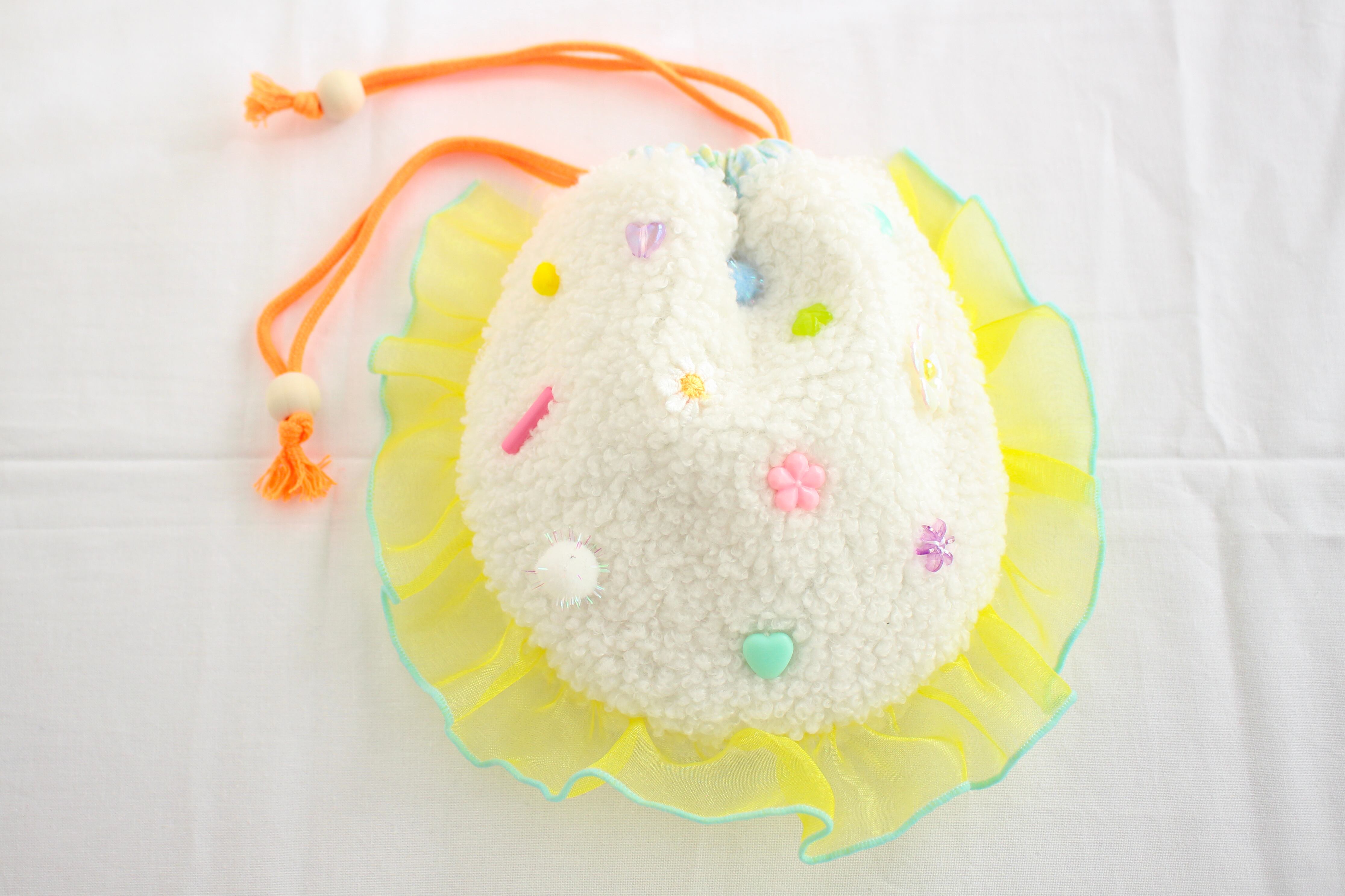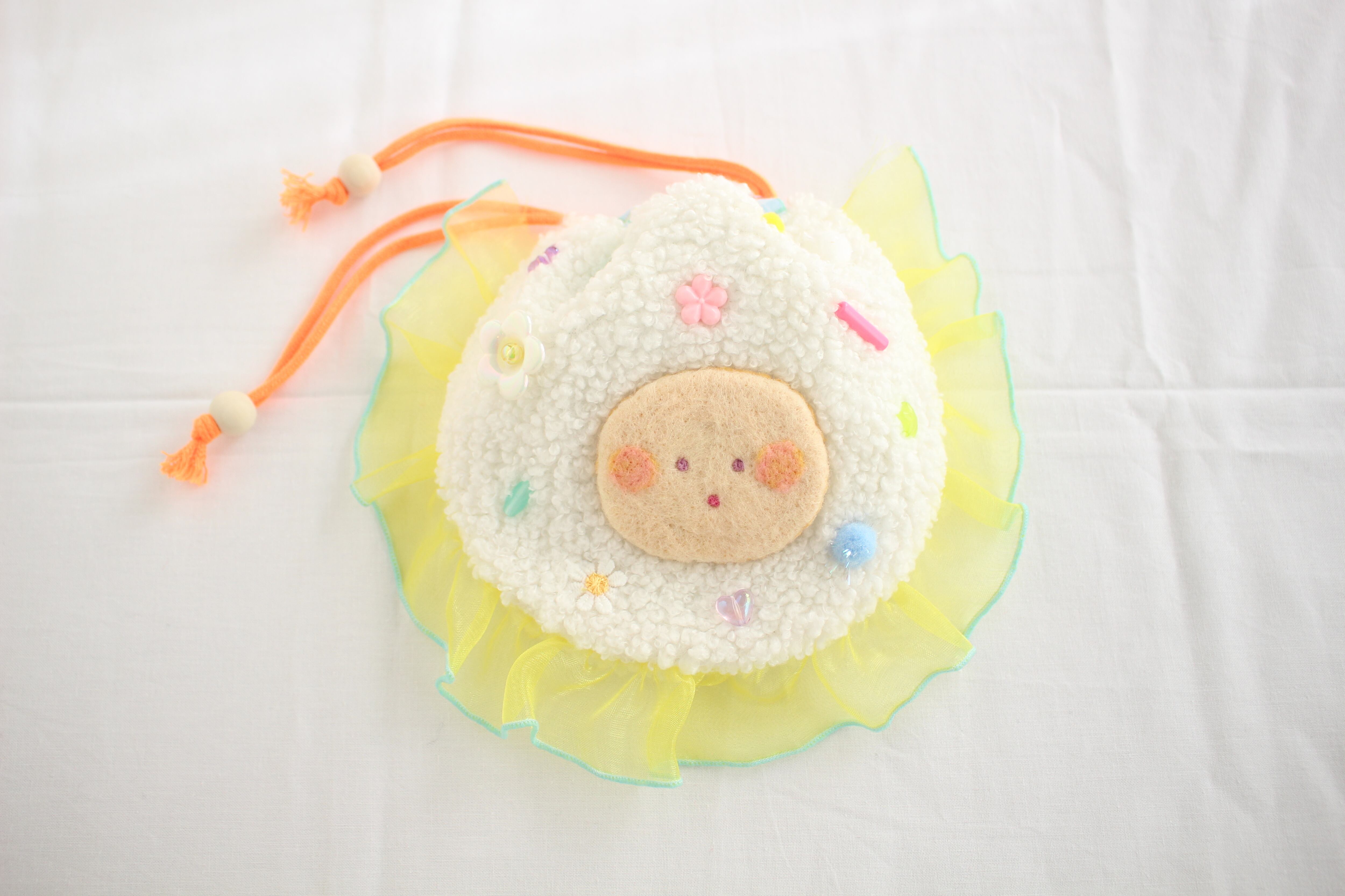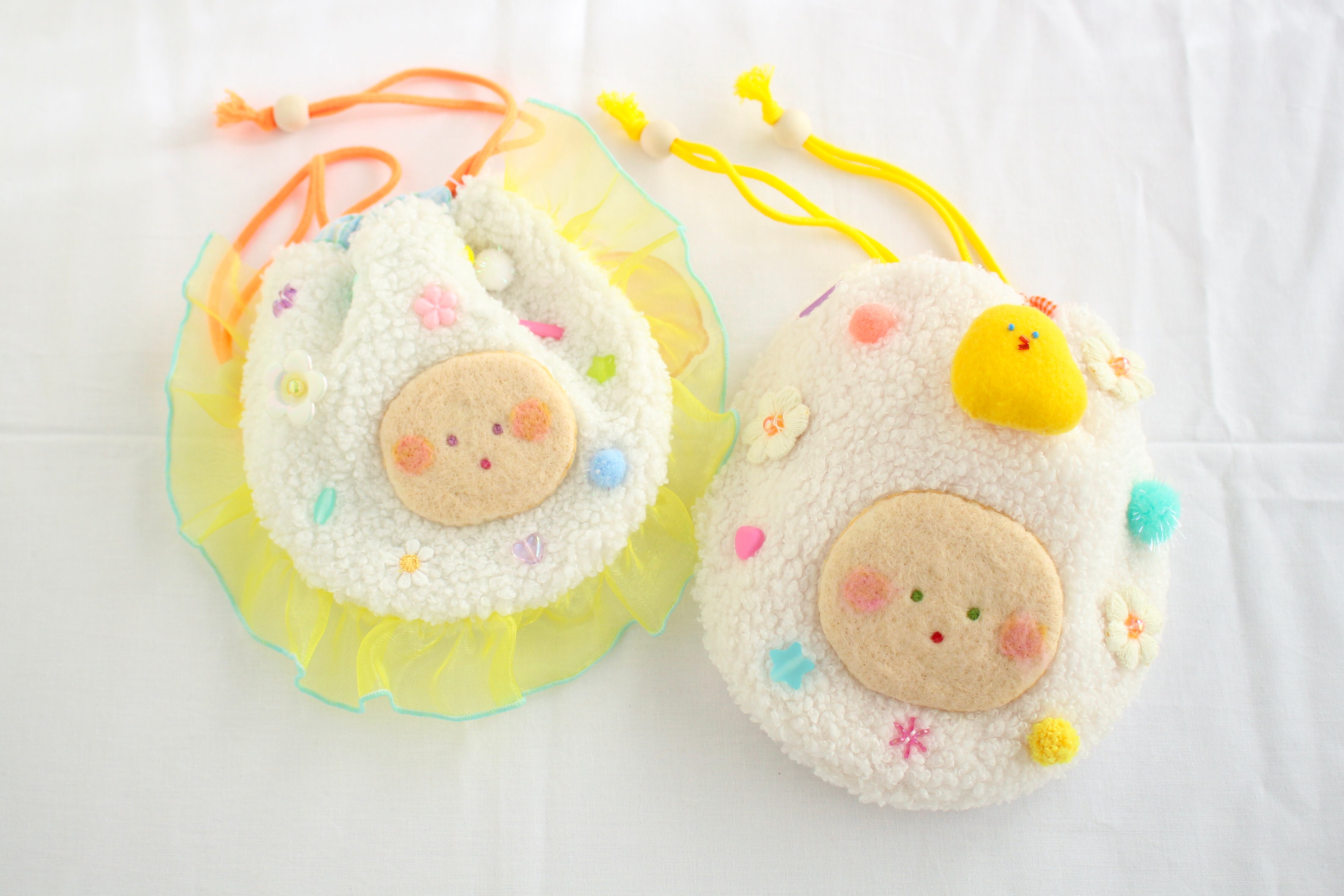 ◯素材:羊毛フェルト、フェルト、刺繍糸、ビーズ、ボア生地