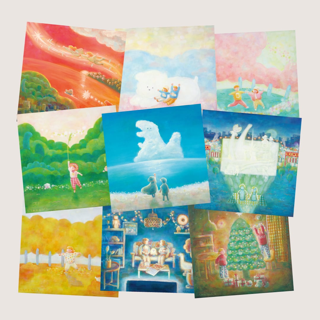 3/17-22 いちのせかぶと memories に出品している最新作のポストカードセットを3種類に分けました!もともとカレンダーの原画として制作した油絵なので、月別に3分割しています。