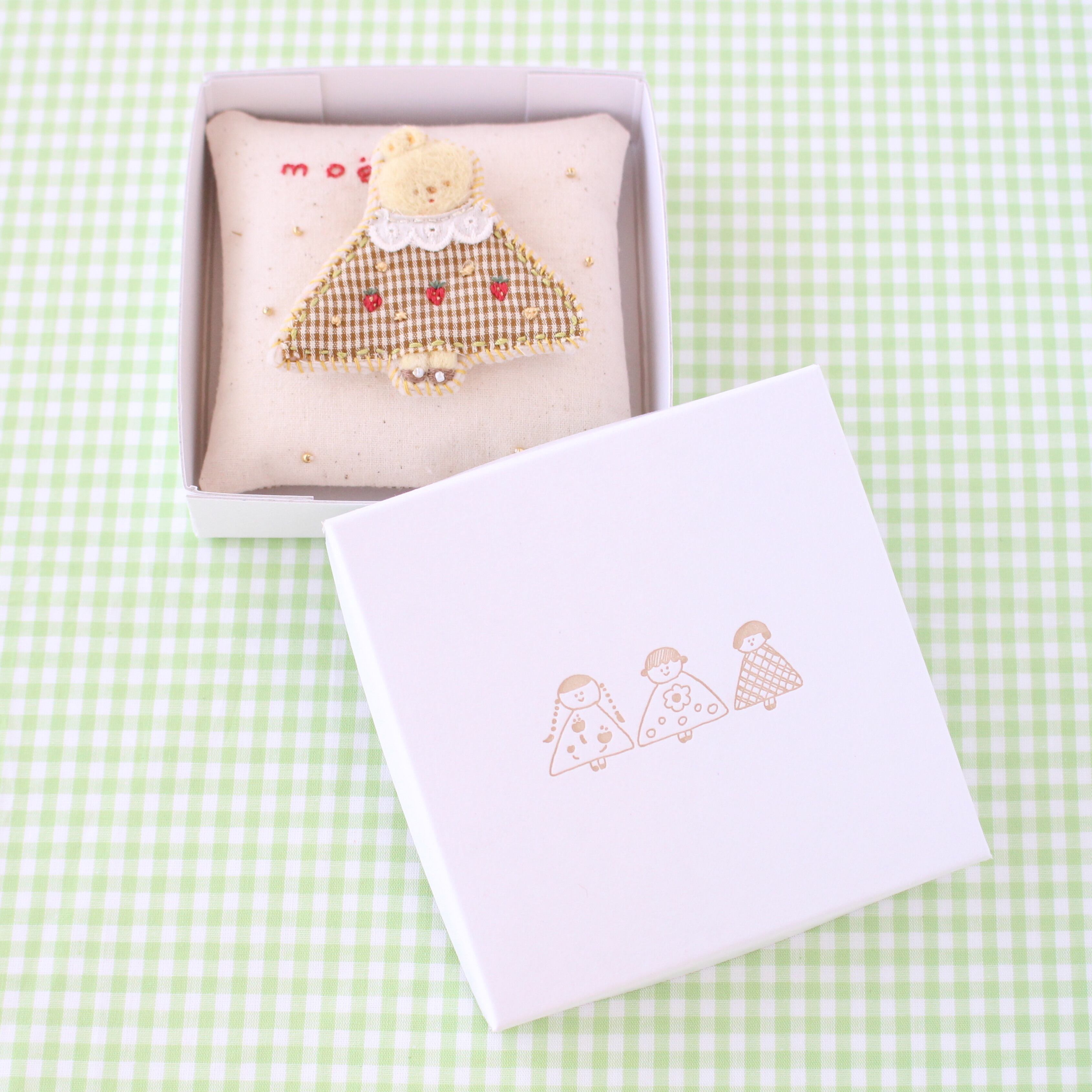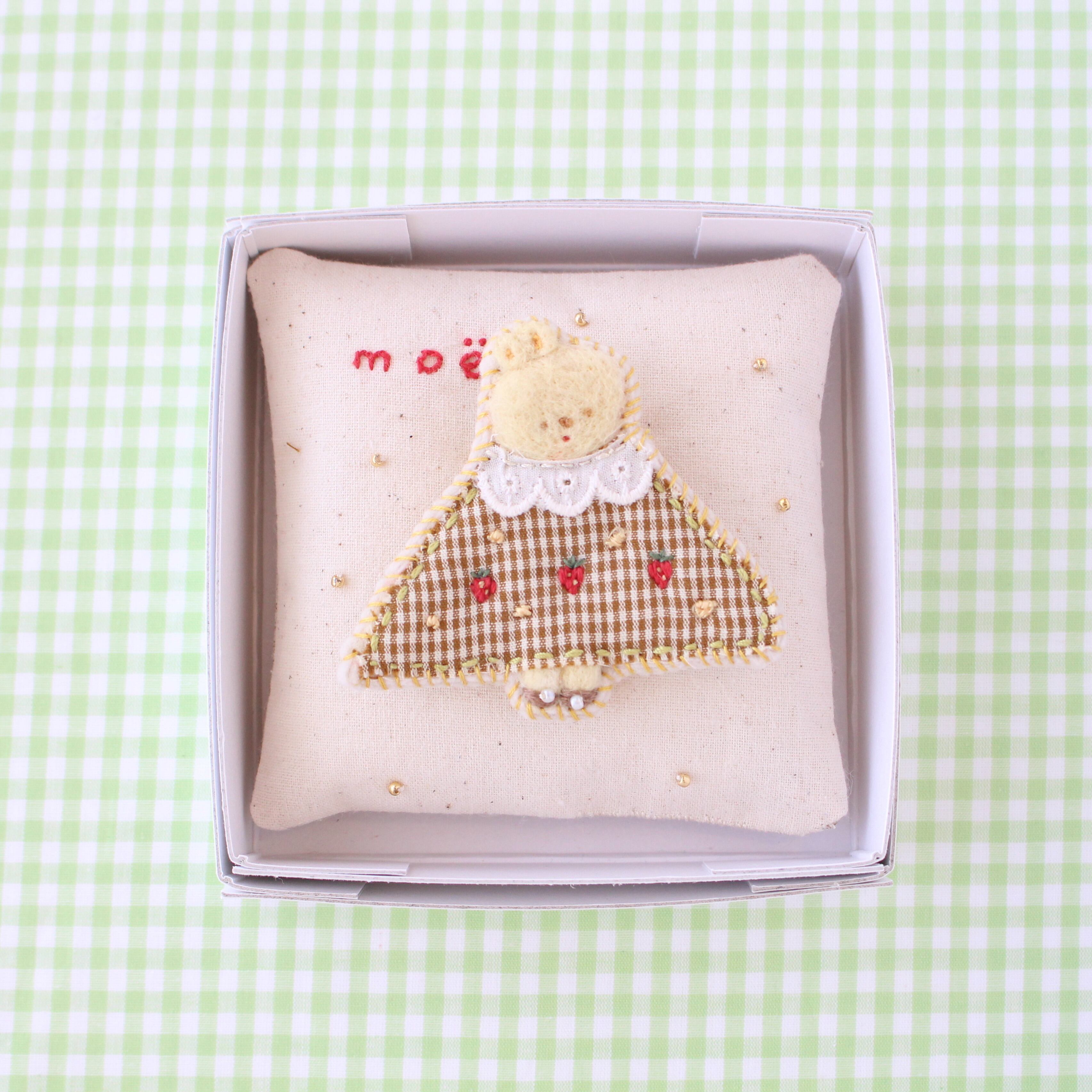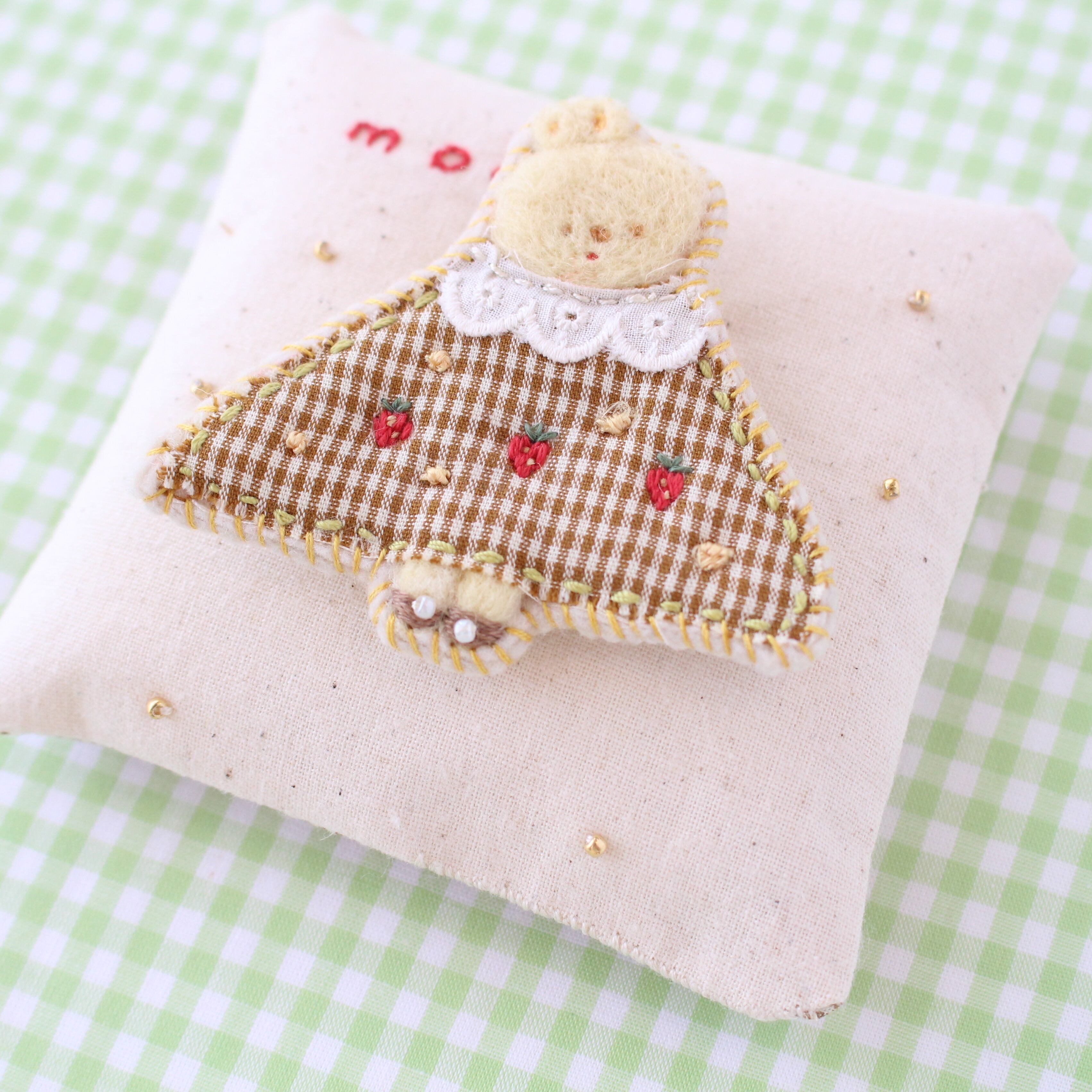 いちごの刺繍のワンピースのうさぎbrooch