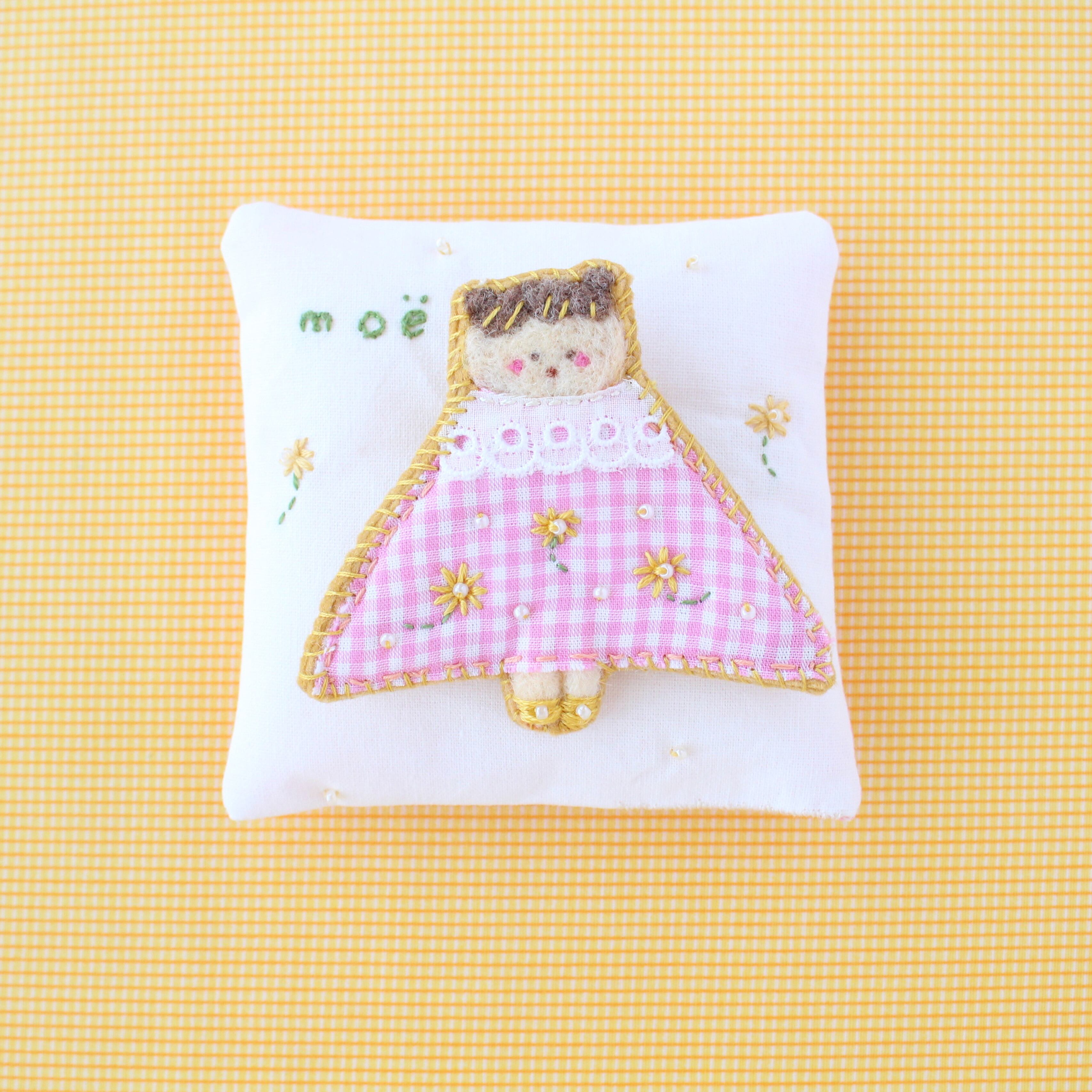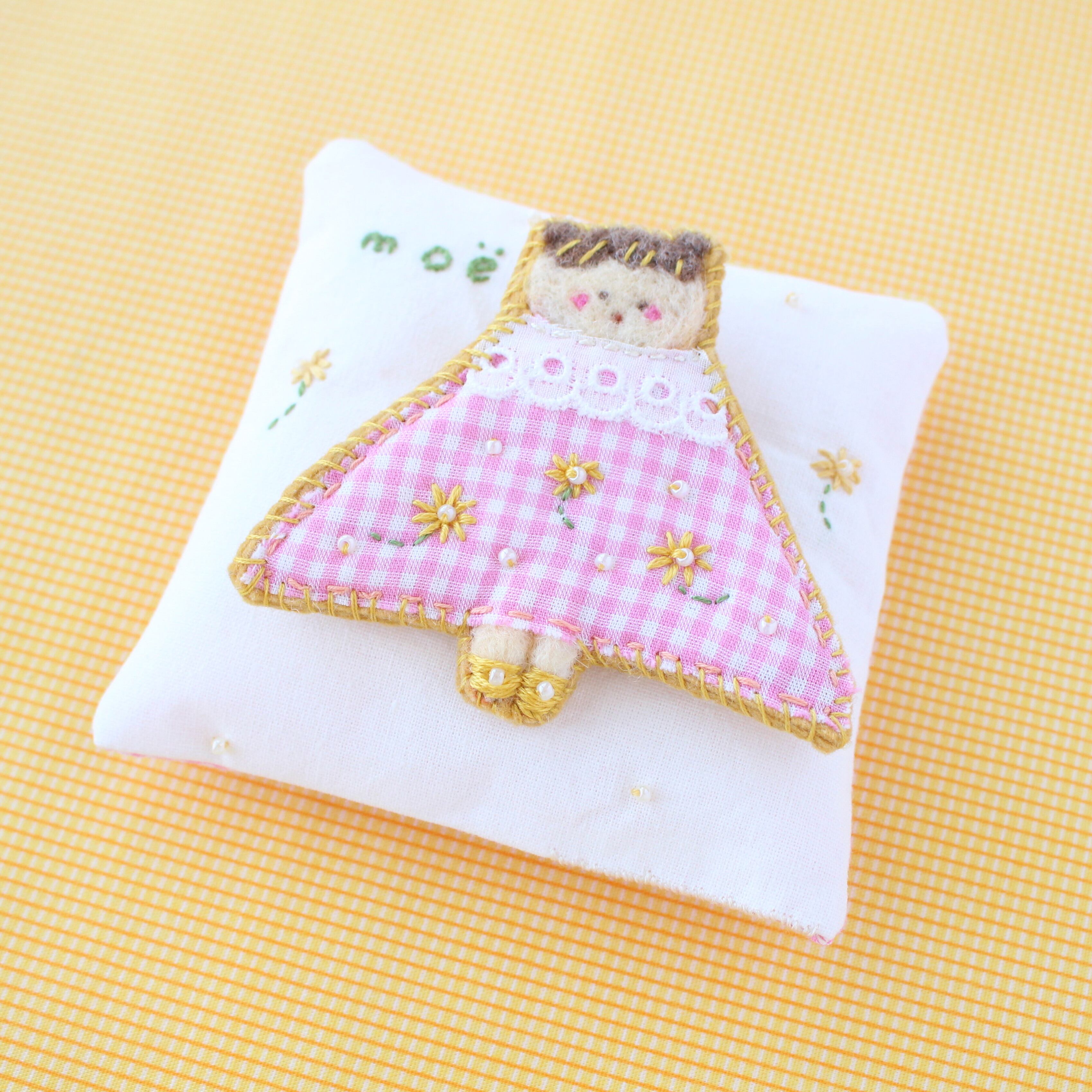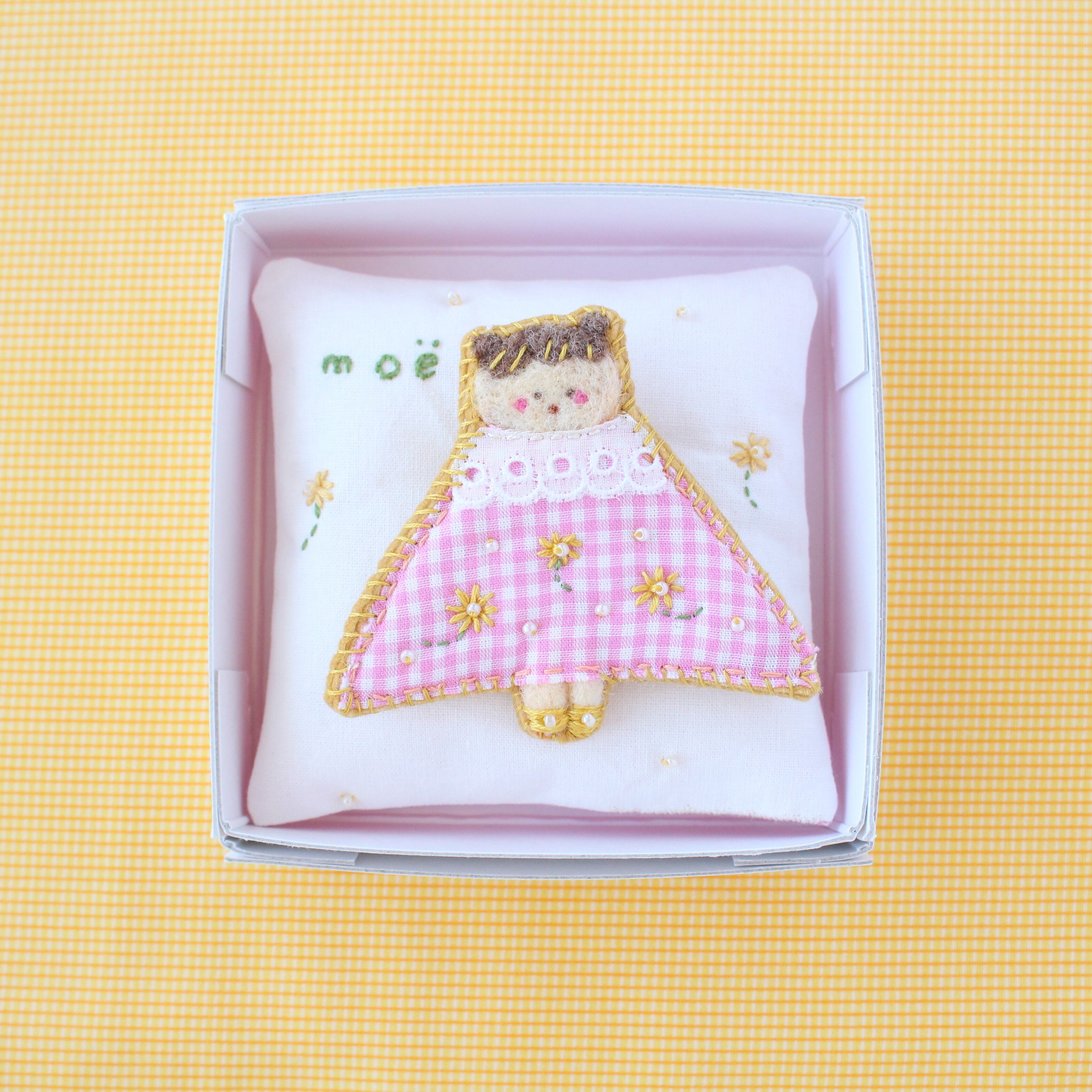 ピンクのチェックとお花のワンピースのおんなのこbrooch