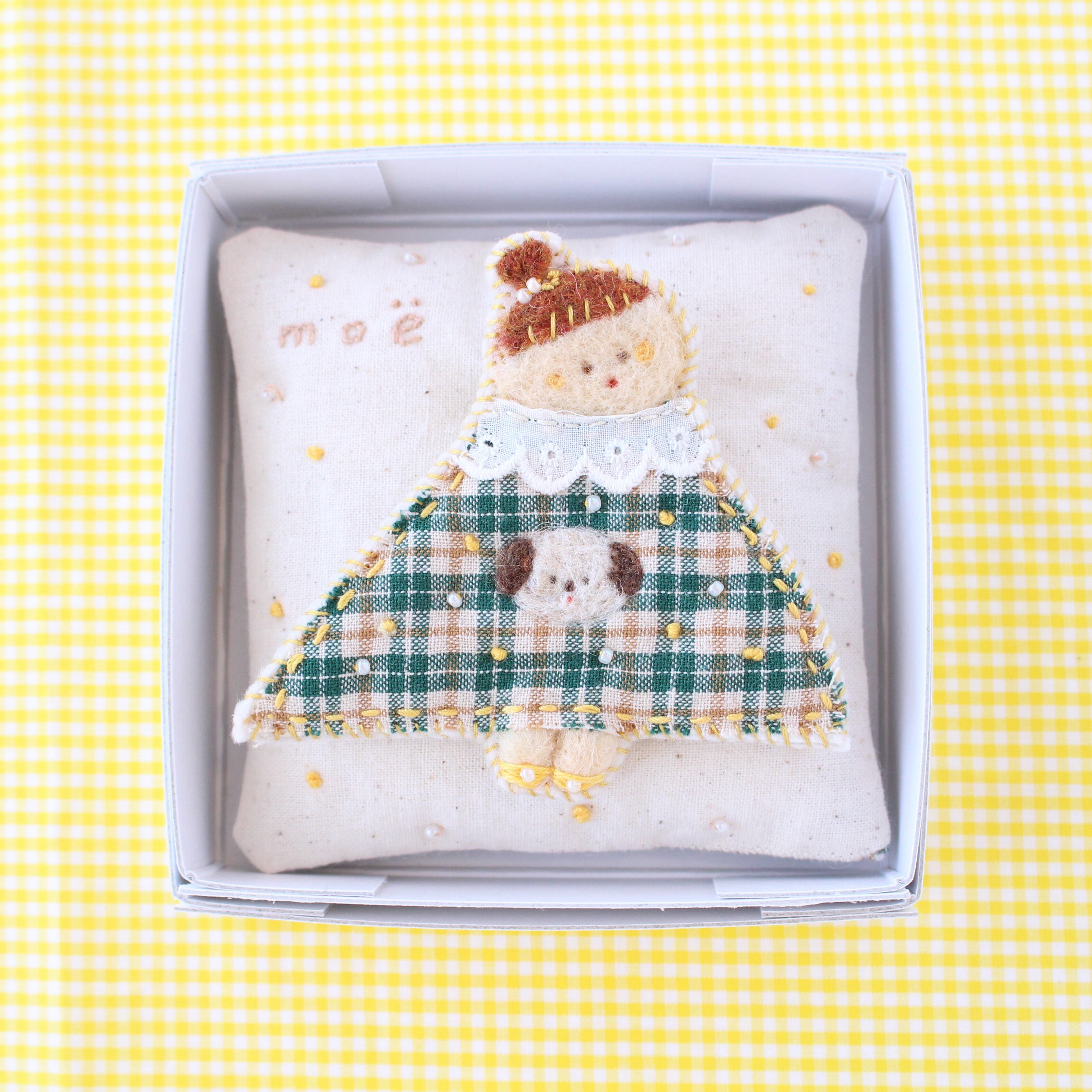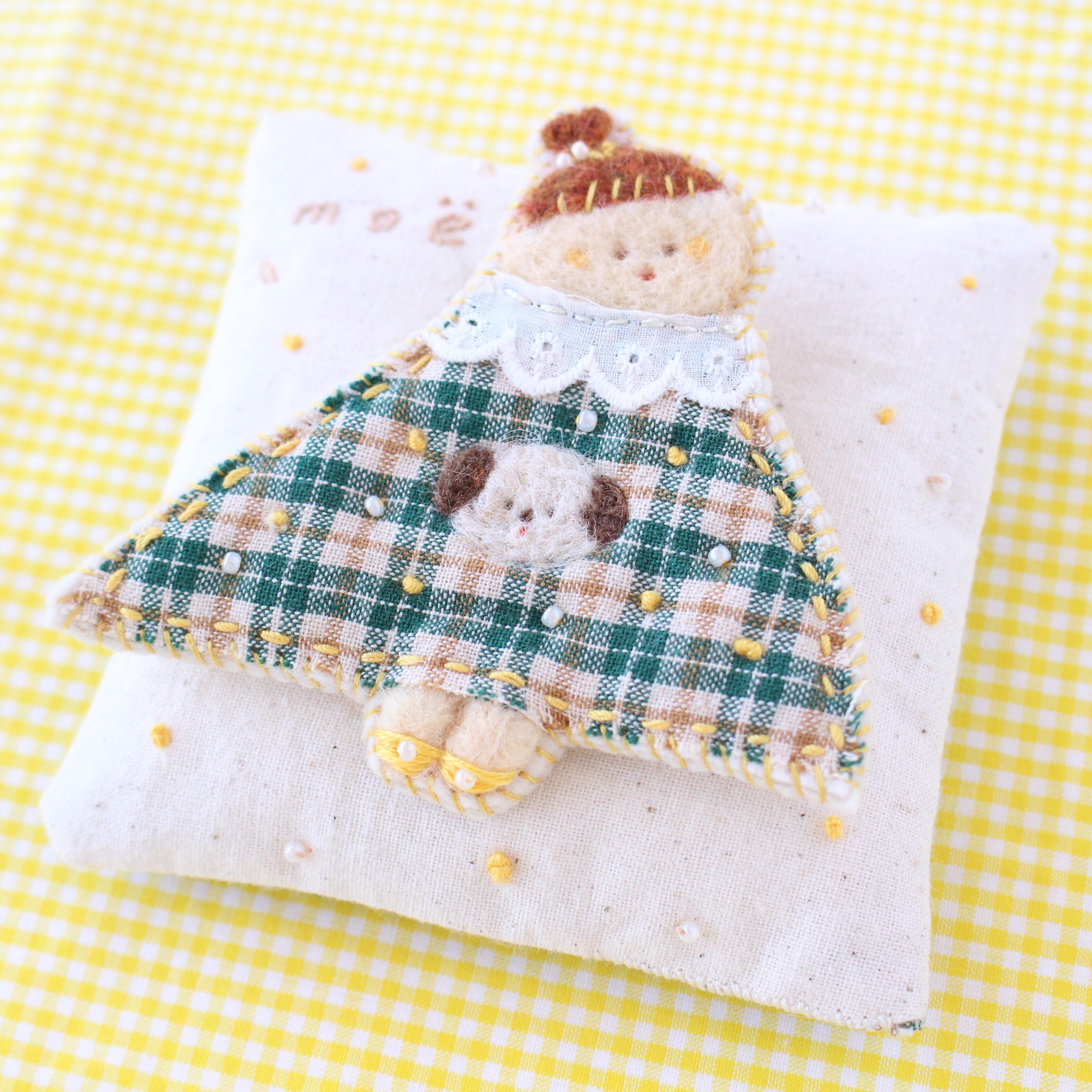 チェックとわんのワンピースのおんなのこbrooch