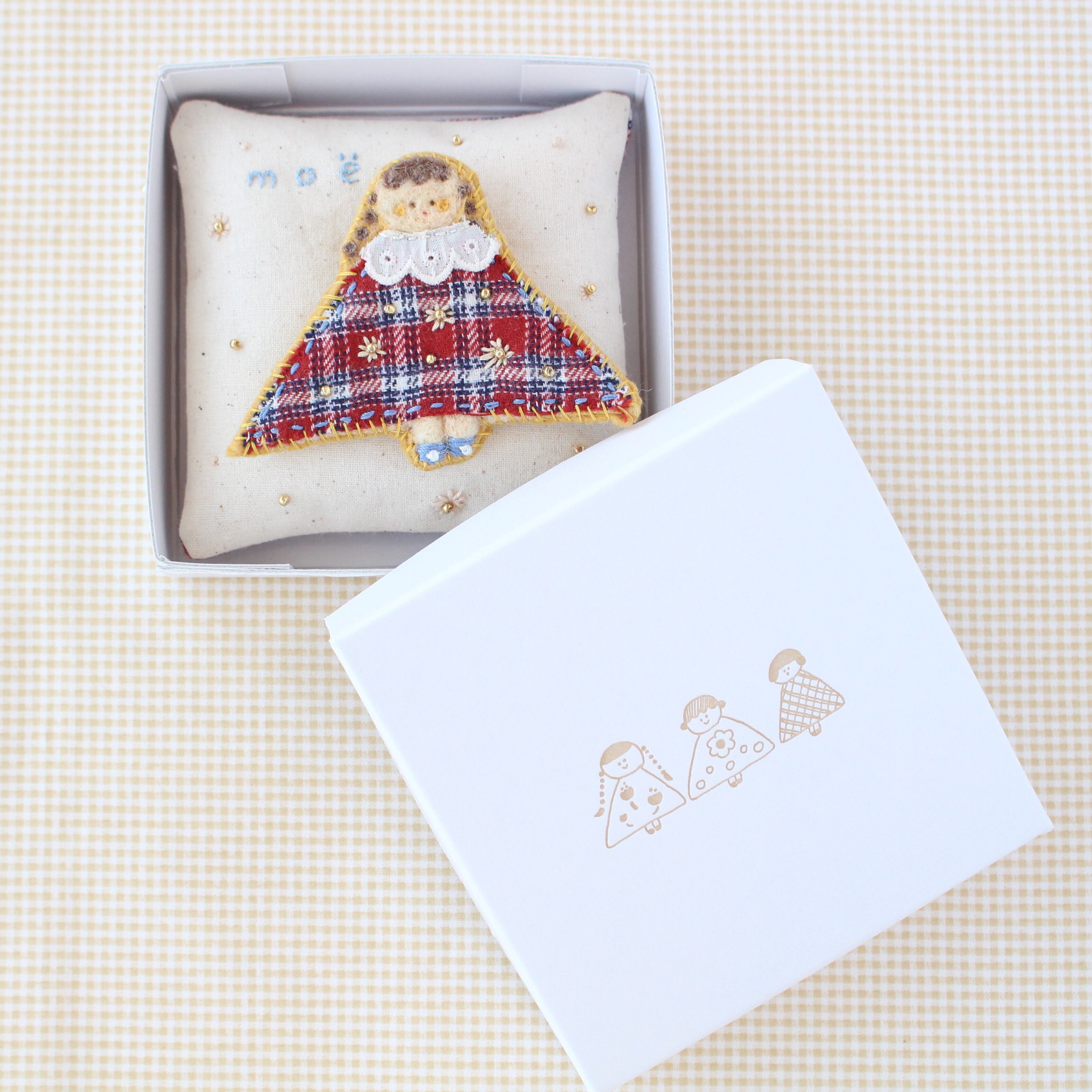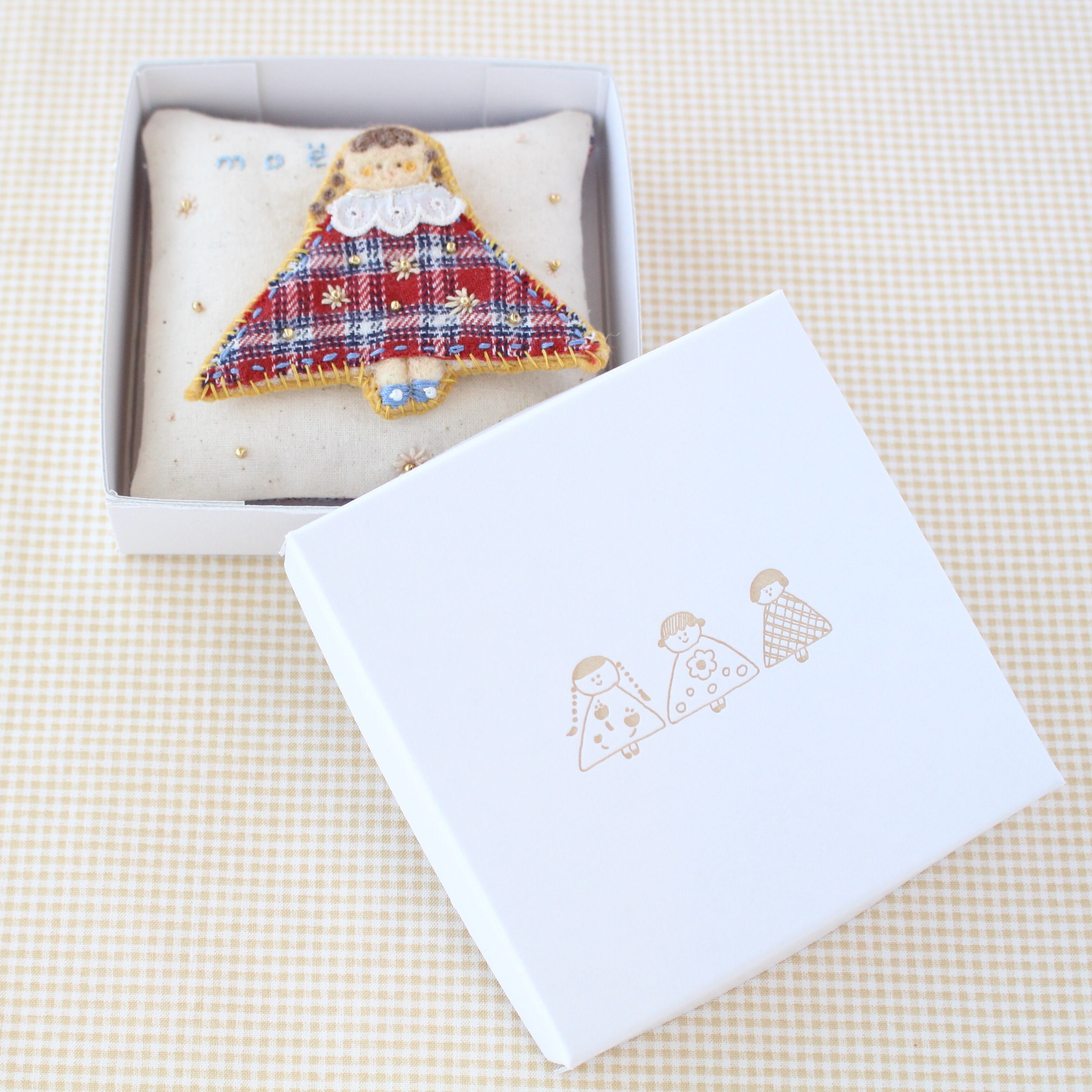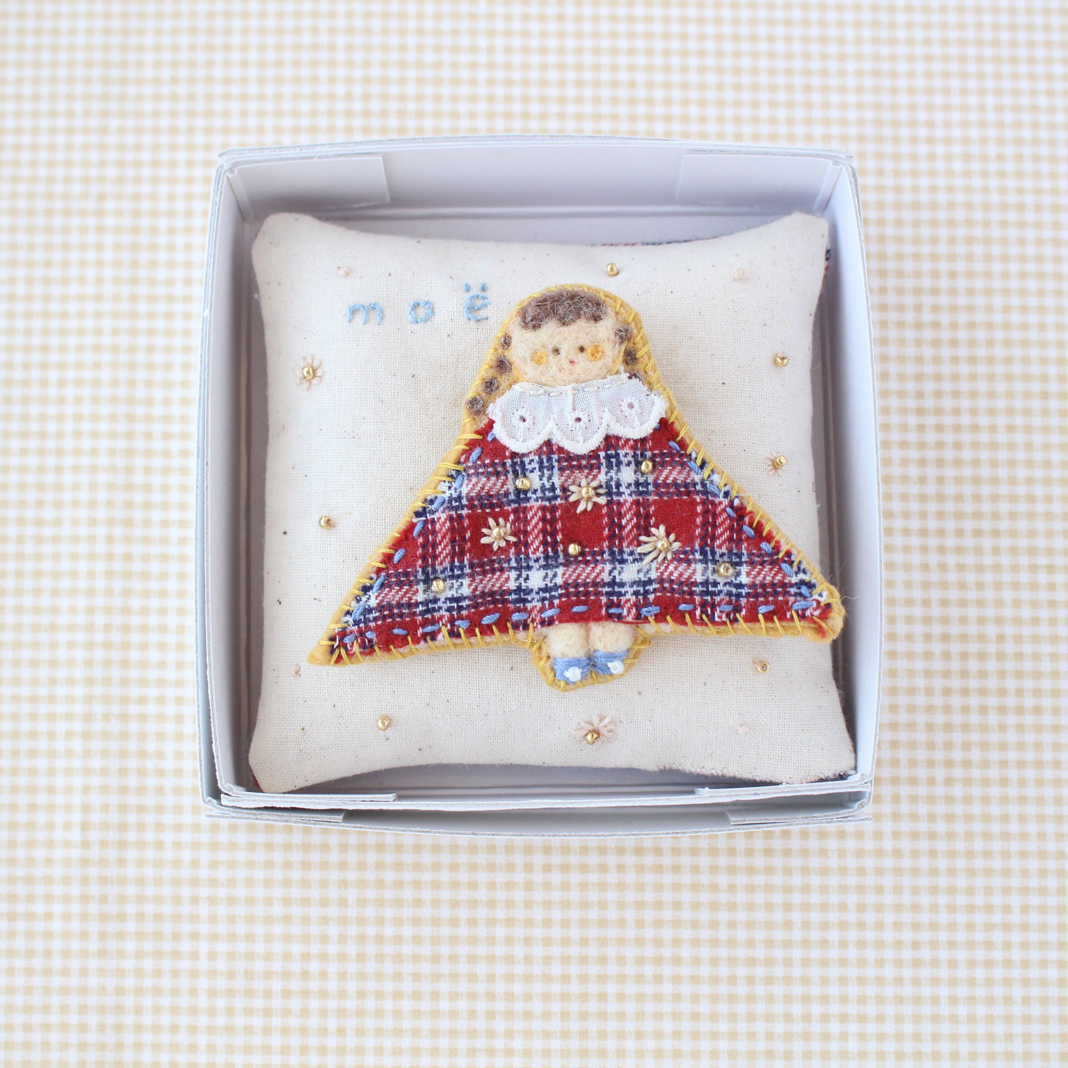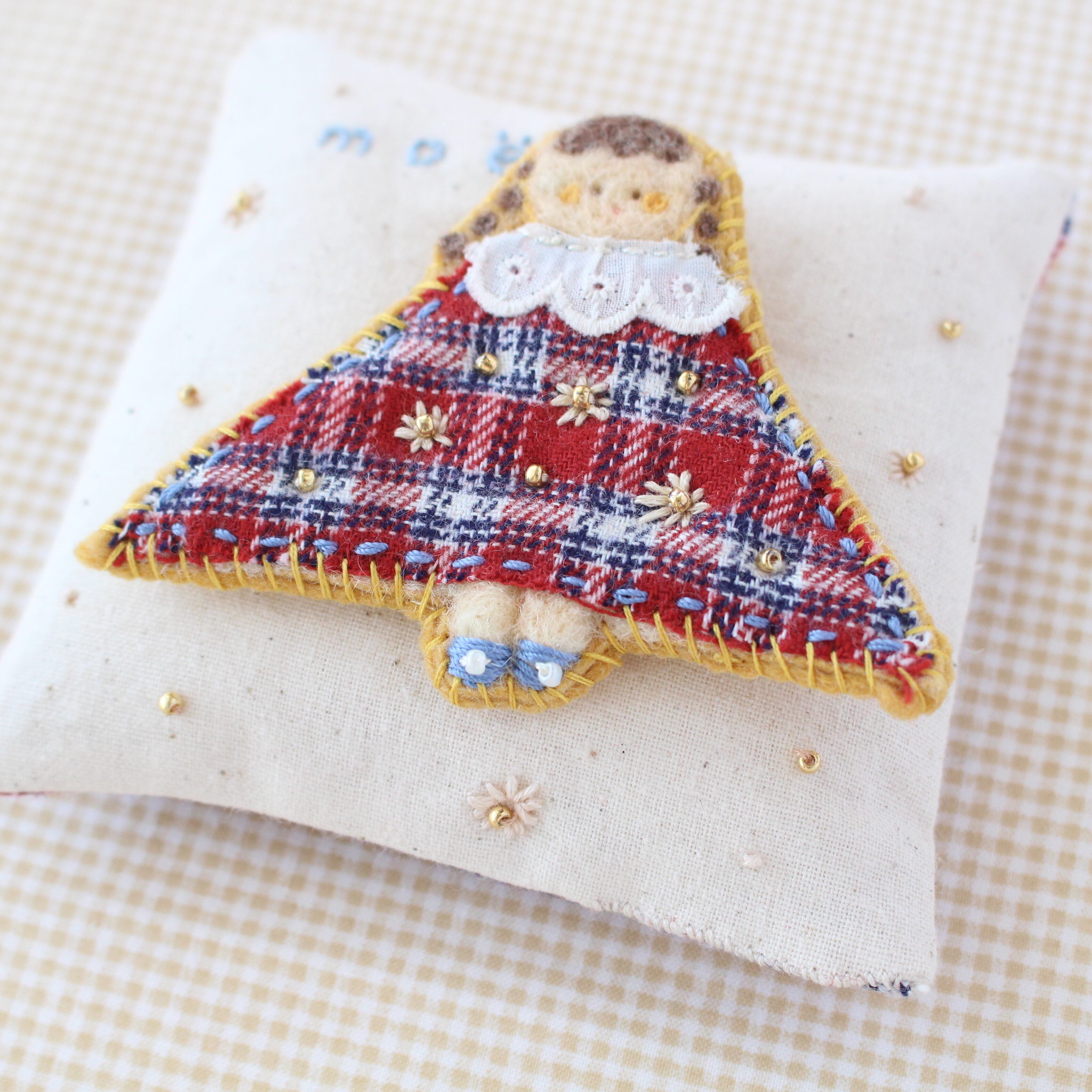 あかとあおのチェックとお花のワンピースのおんなのこbrooch