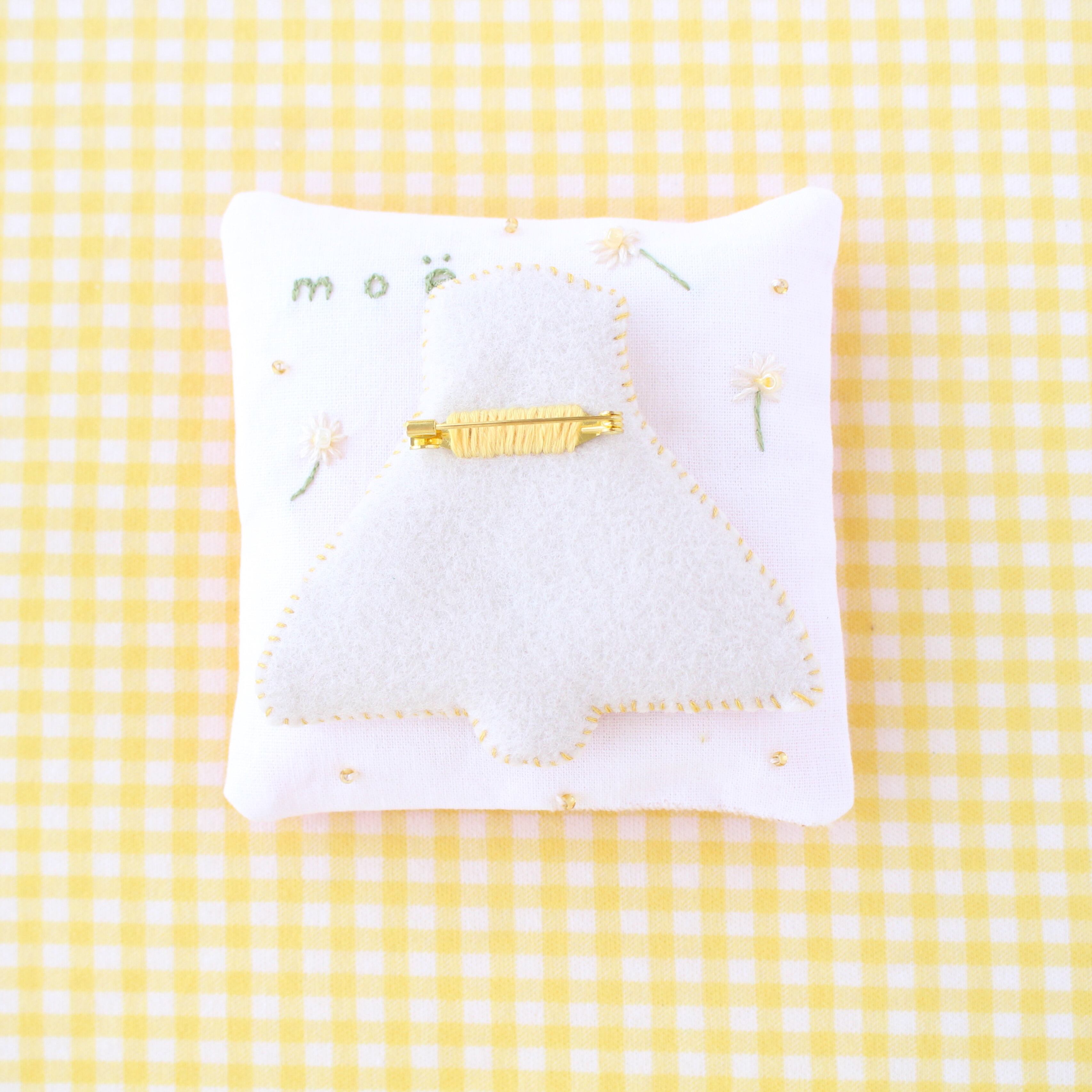 赤いチェックと白いお花の刺繍ワンピースちゃんのbroochです♪
