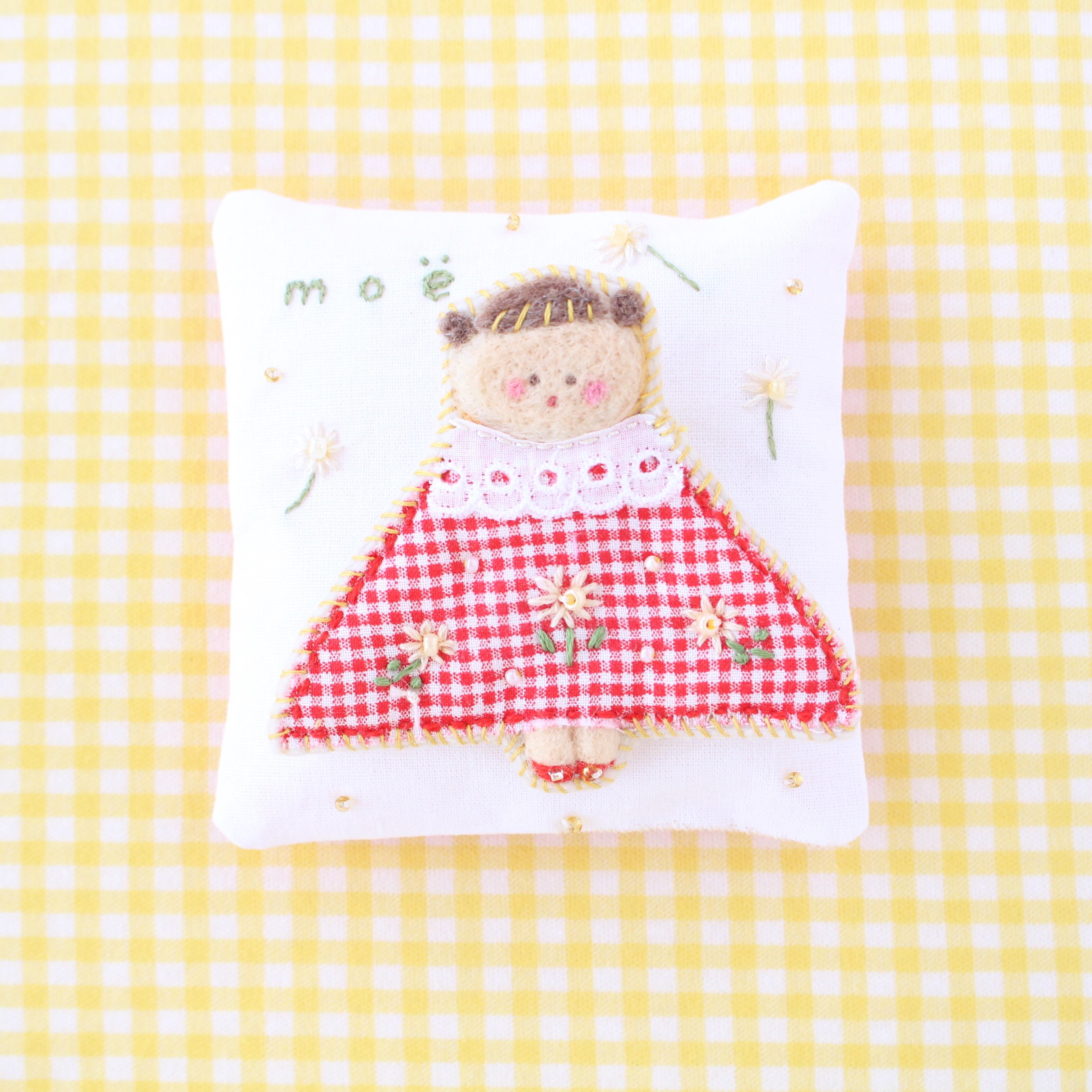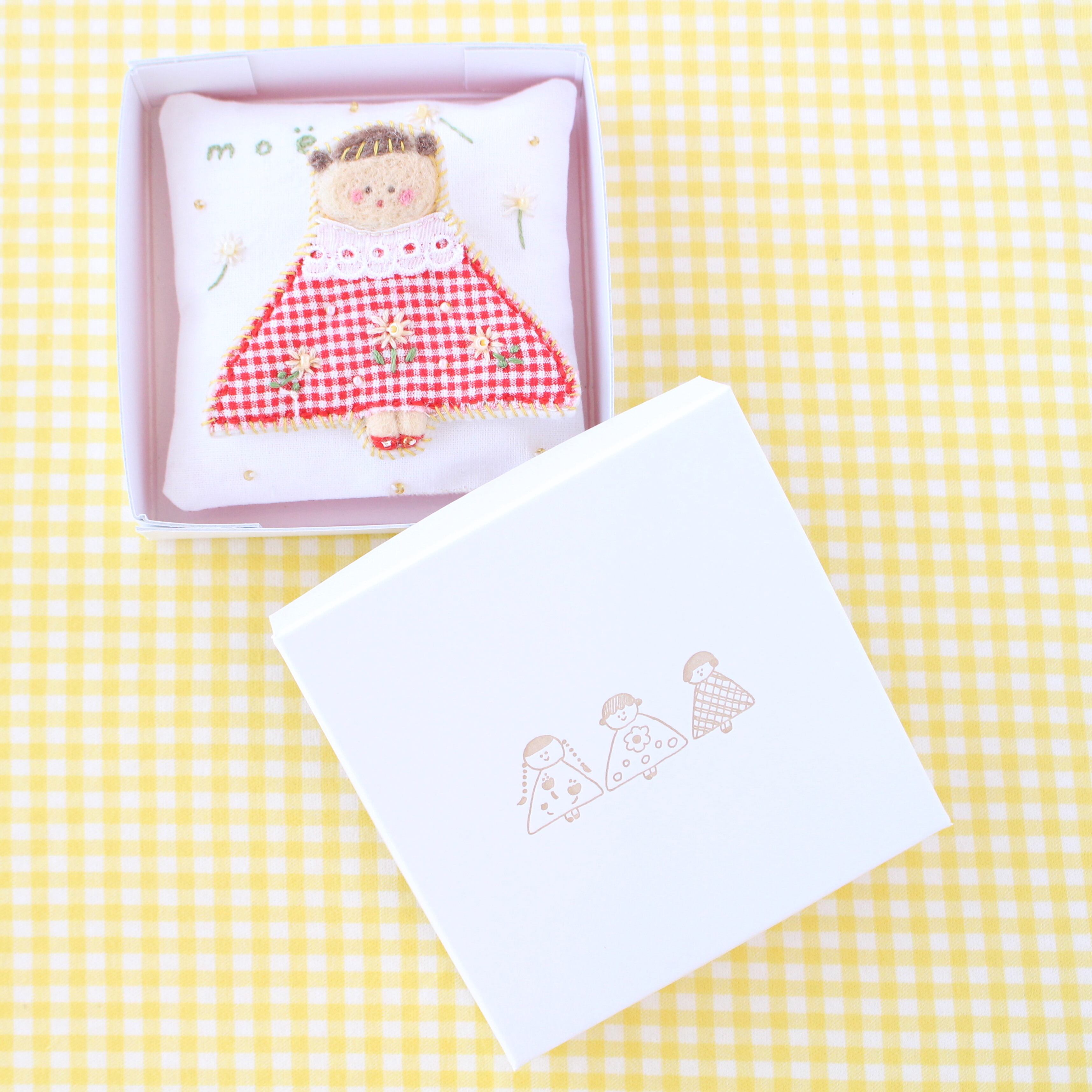 赤いチェックとお花の刺繍ワンピースのおんなのこbrooch