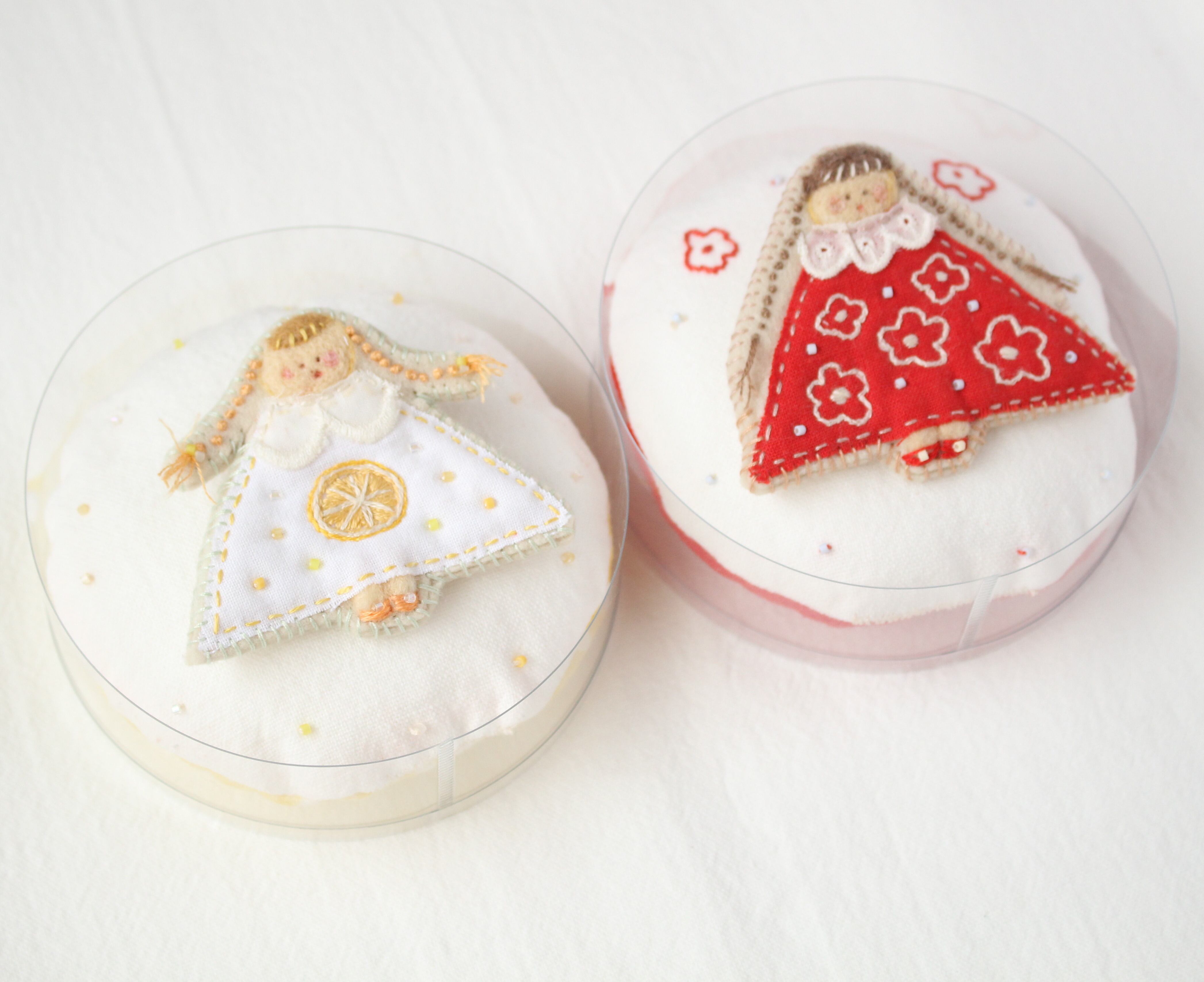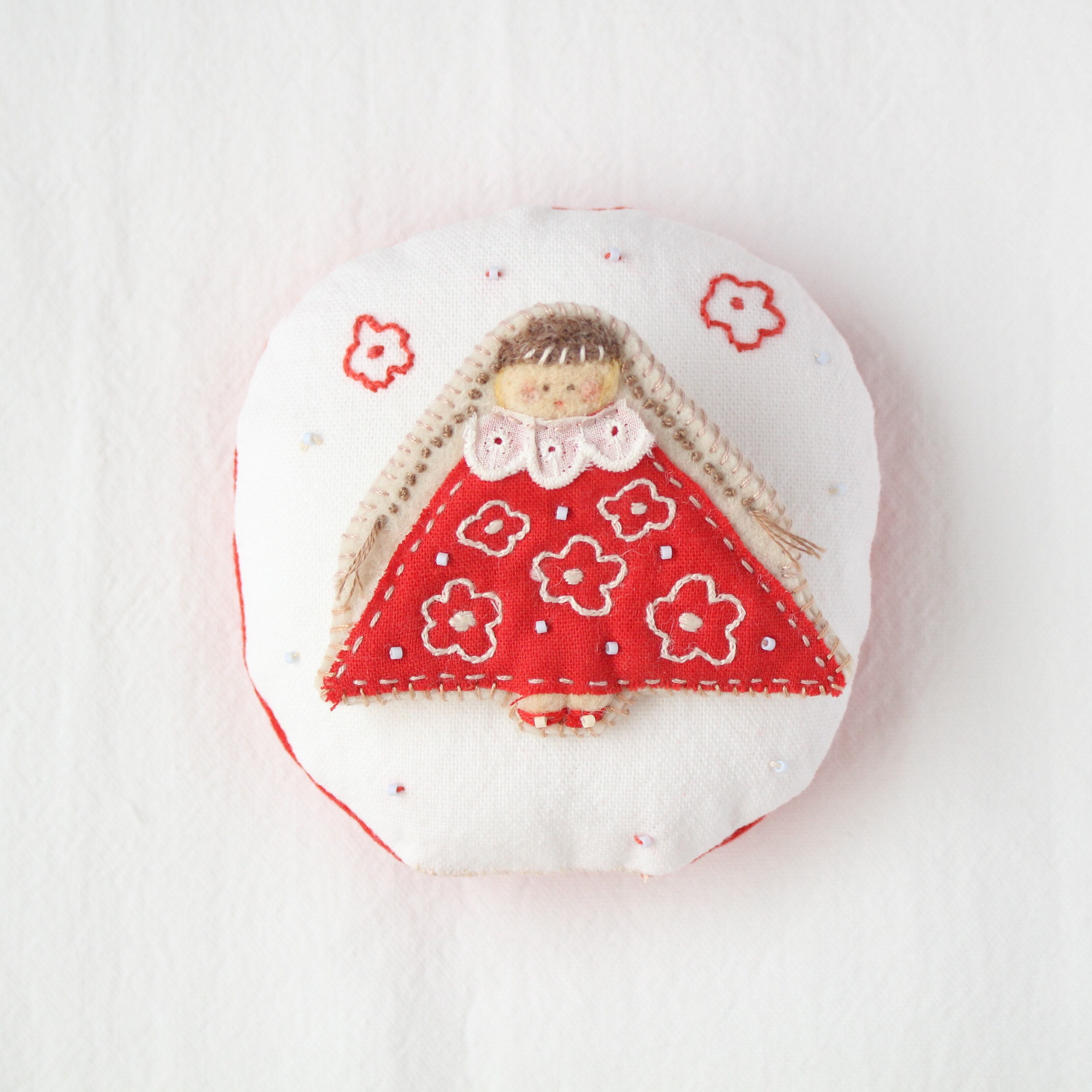 お花の刺繍と赤いワンピースのおんなのこbrooch