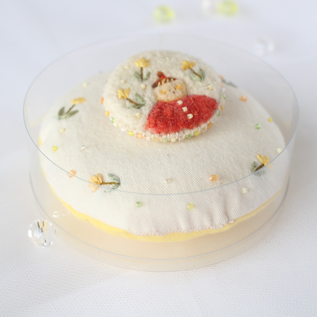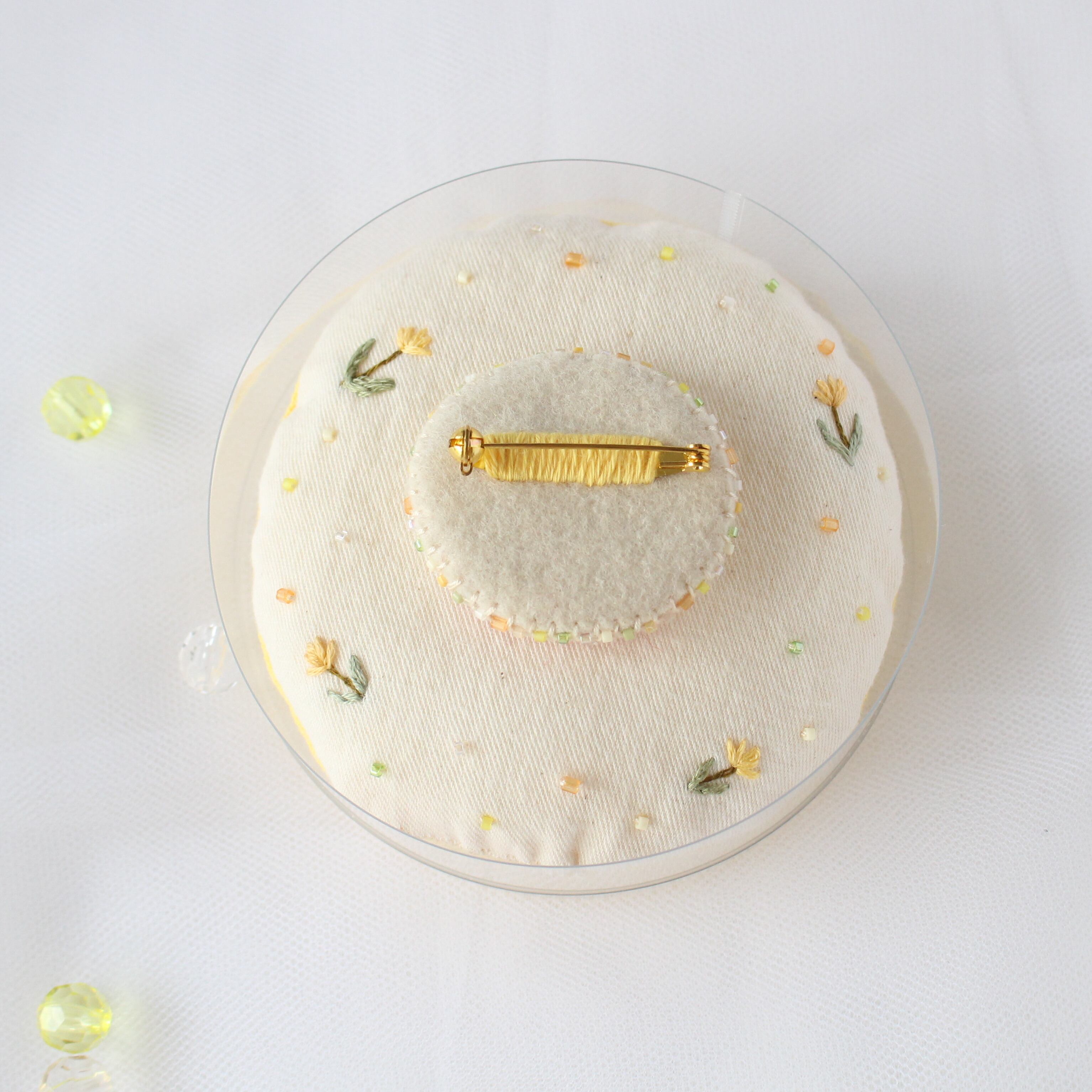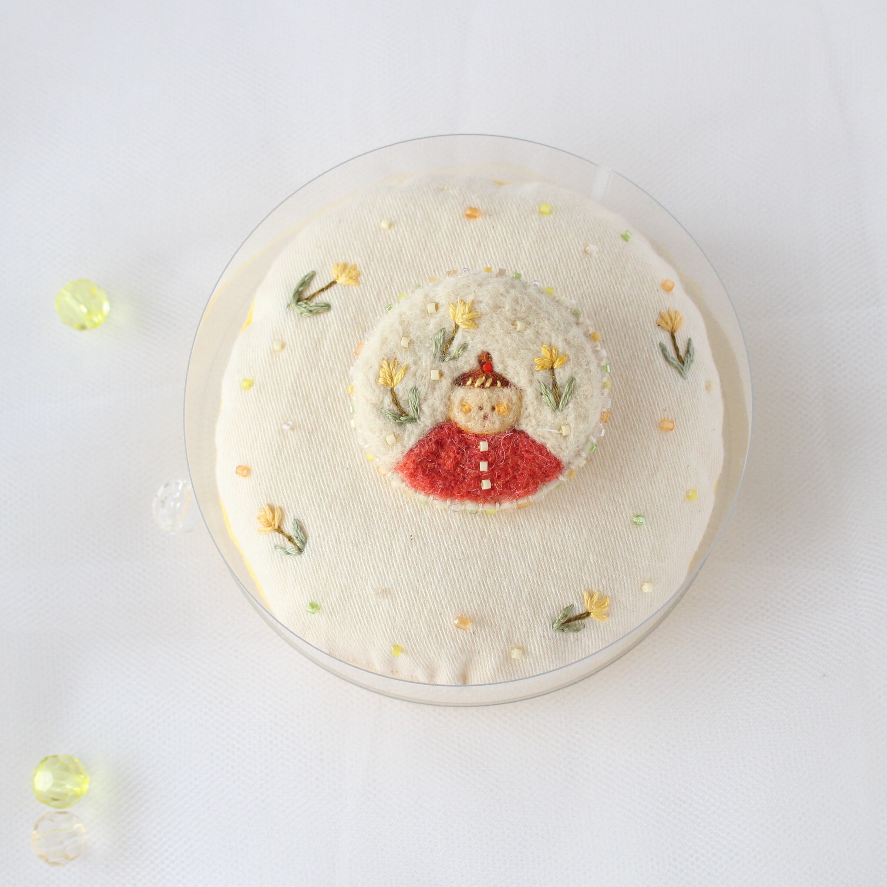 やさしいきいろのお花と赤いワンピースのおんなのこのbroochです。