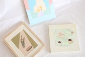 絵の表面に保護用のニスを塗りコーティングしていますが、鋭利なものや色を付着させるものを近づけないようお願いいたします。