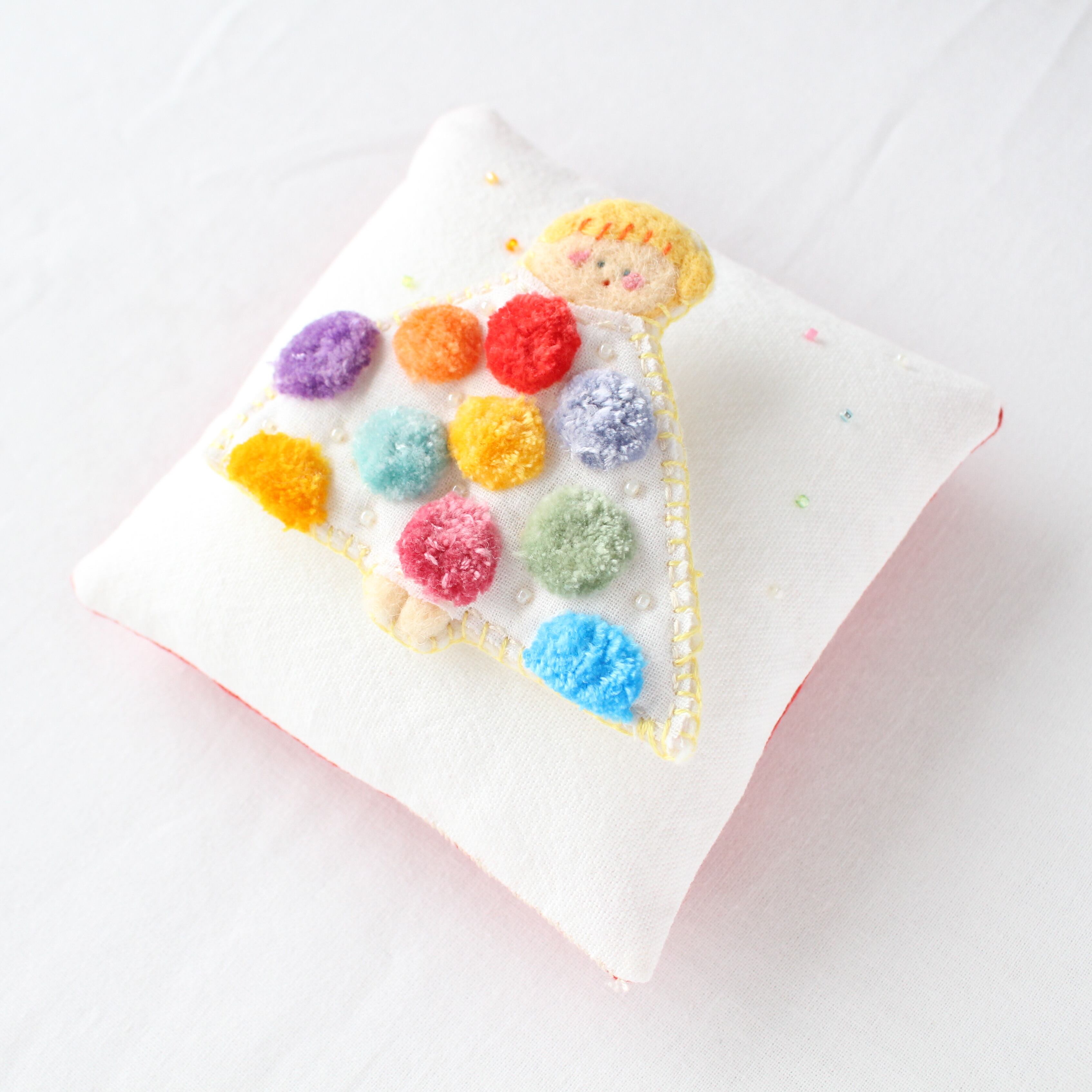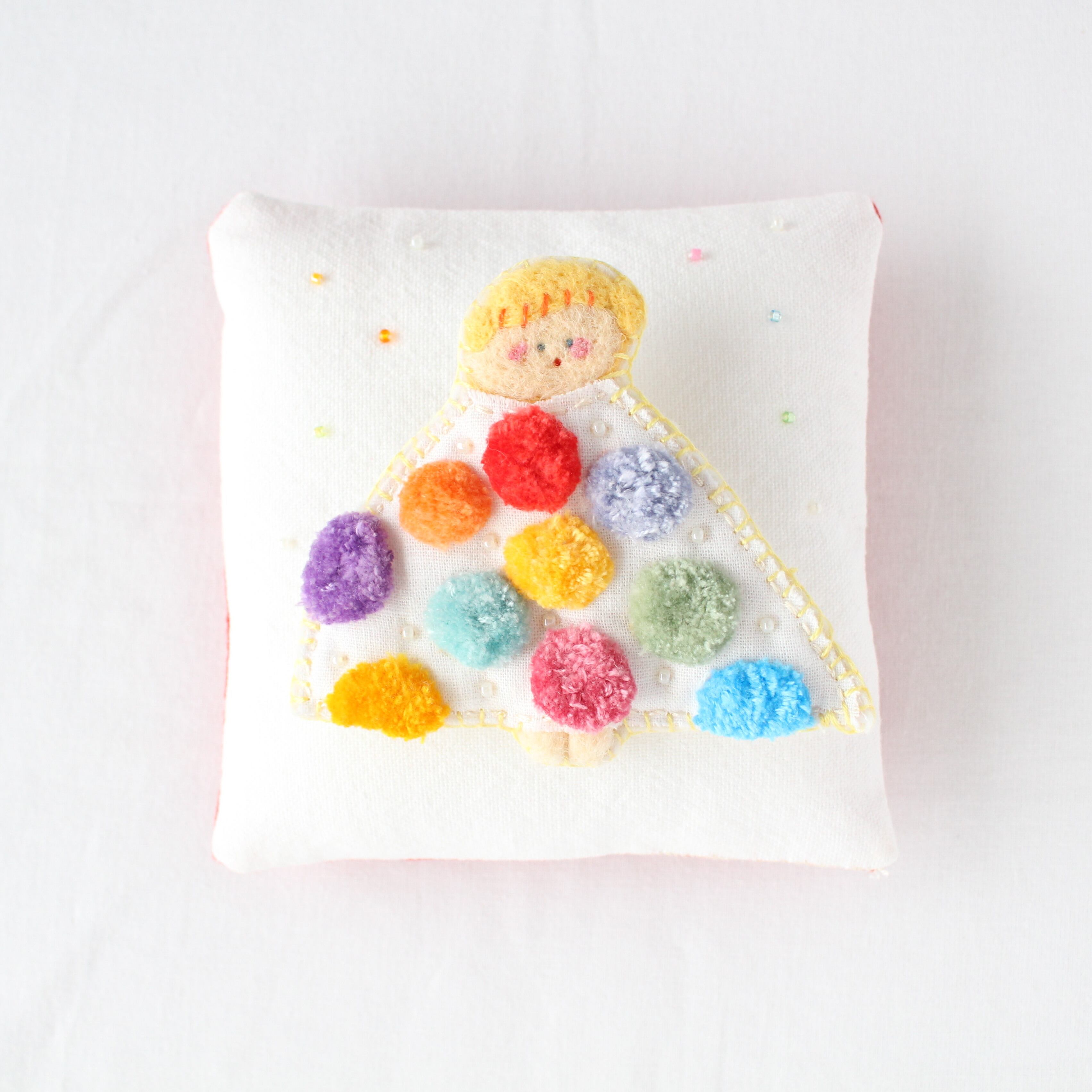 ふわふわカラフルのぼんぼんワンピースのおんなのこのbroochです。