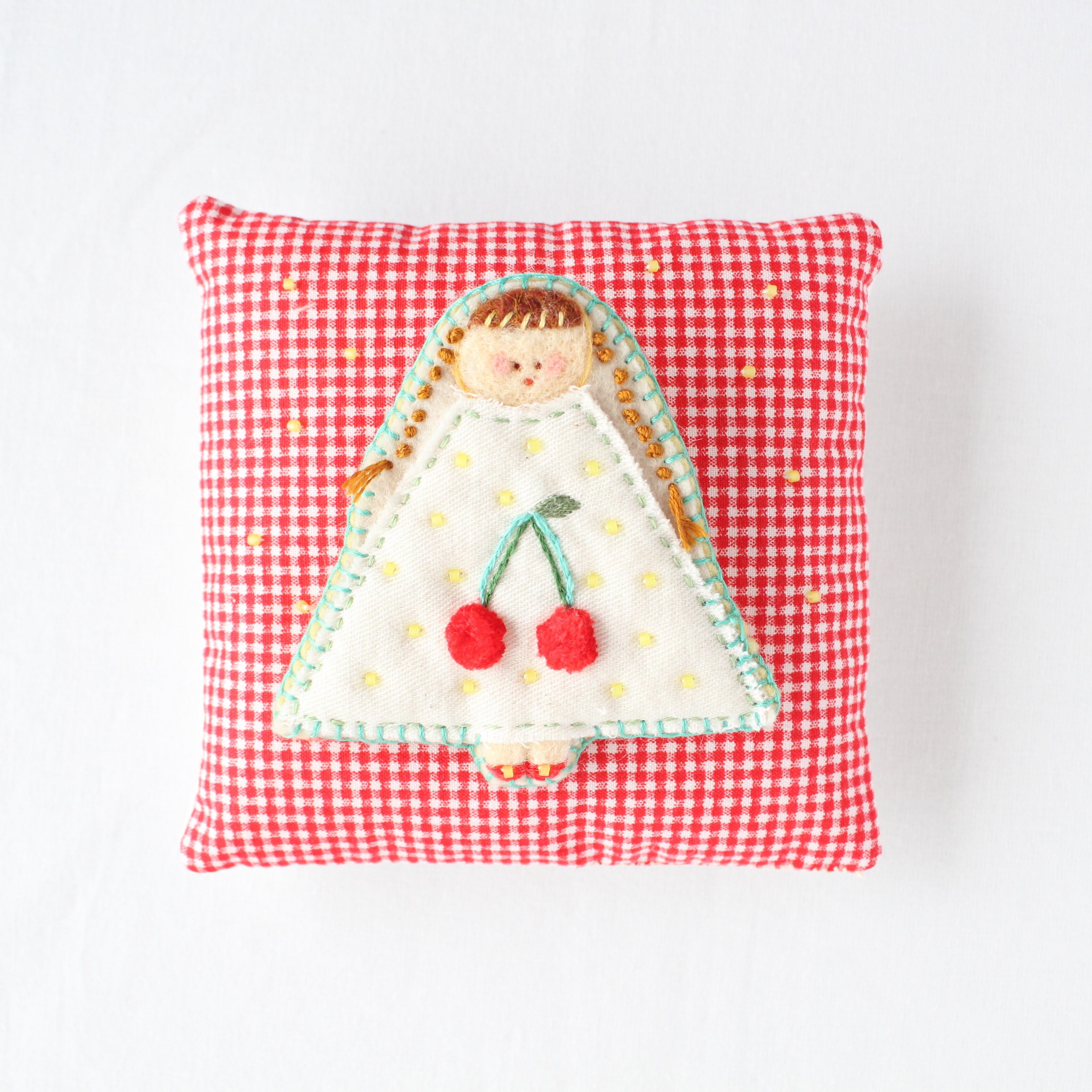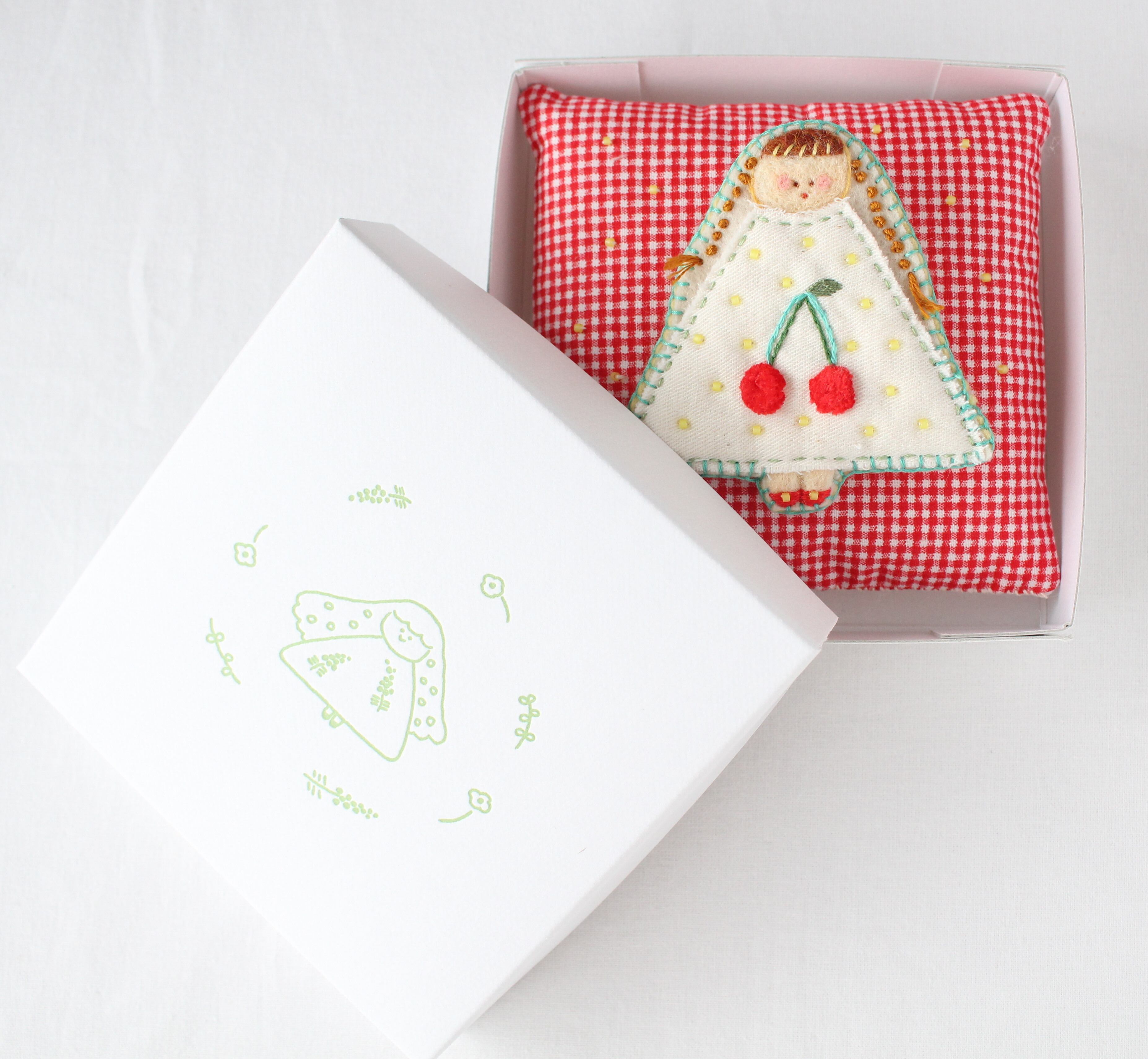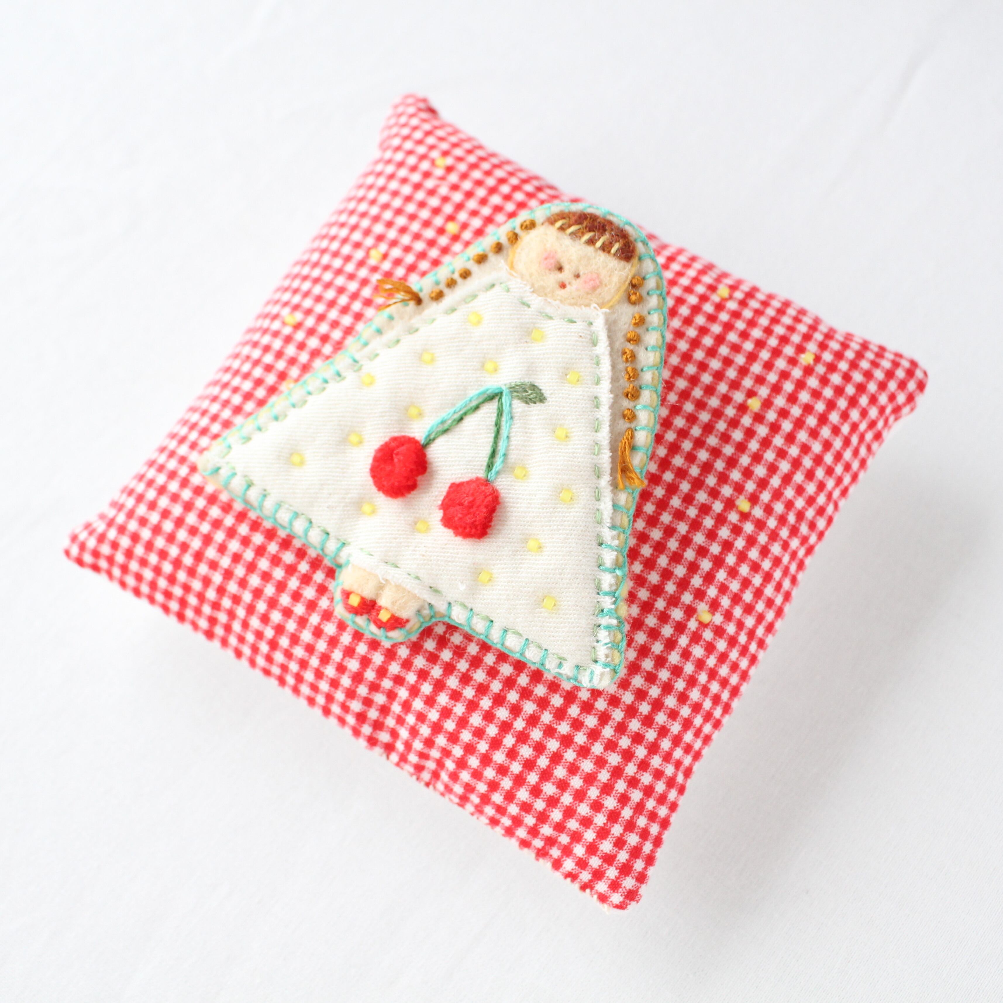 ふわふわのさくらんぼのワンピースちゃんのbroochです。