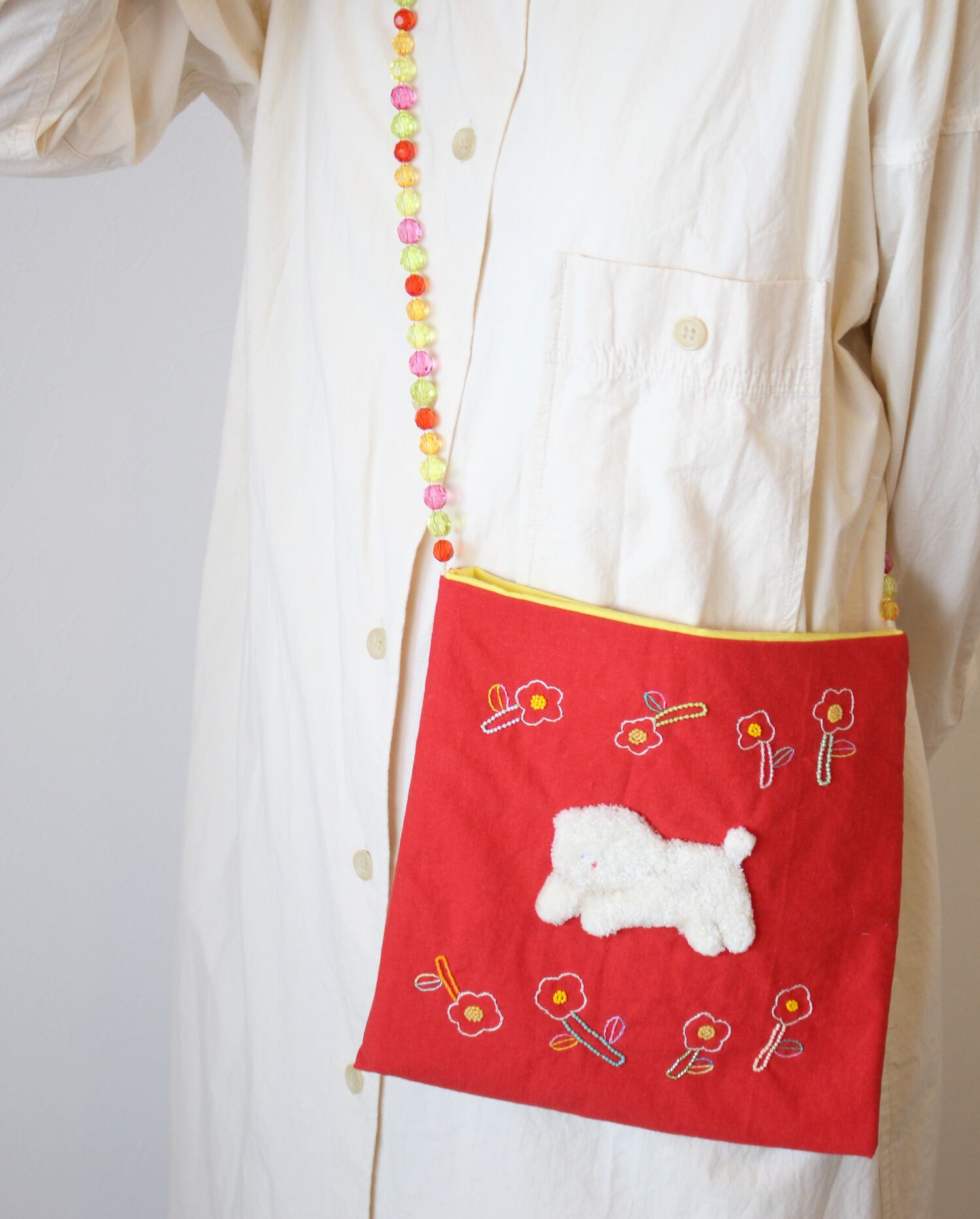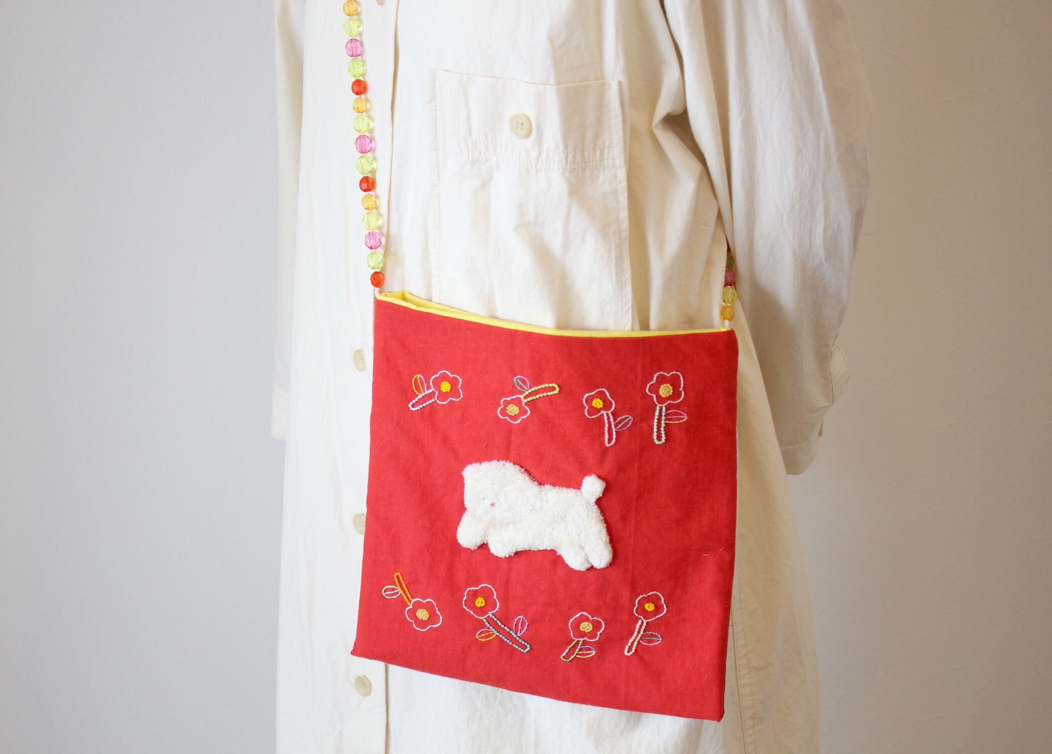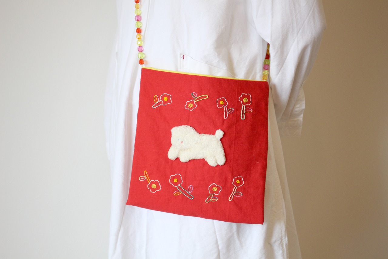 ふわふわわんこのお散歩 shoulder bag です。