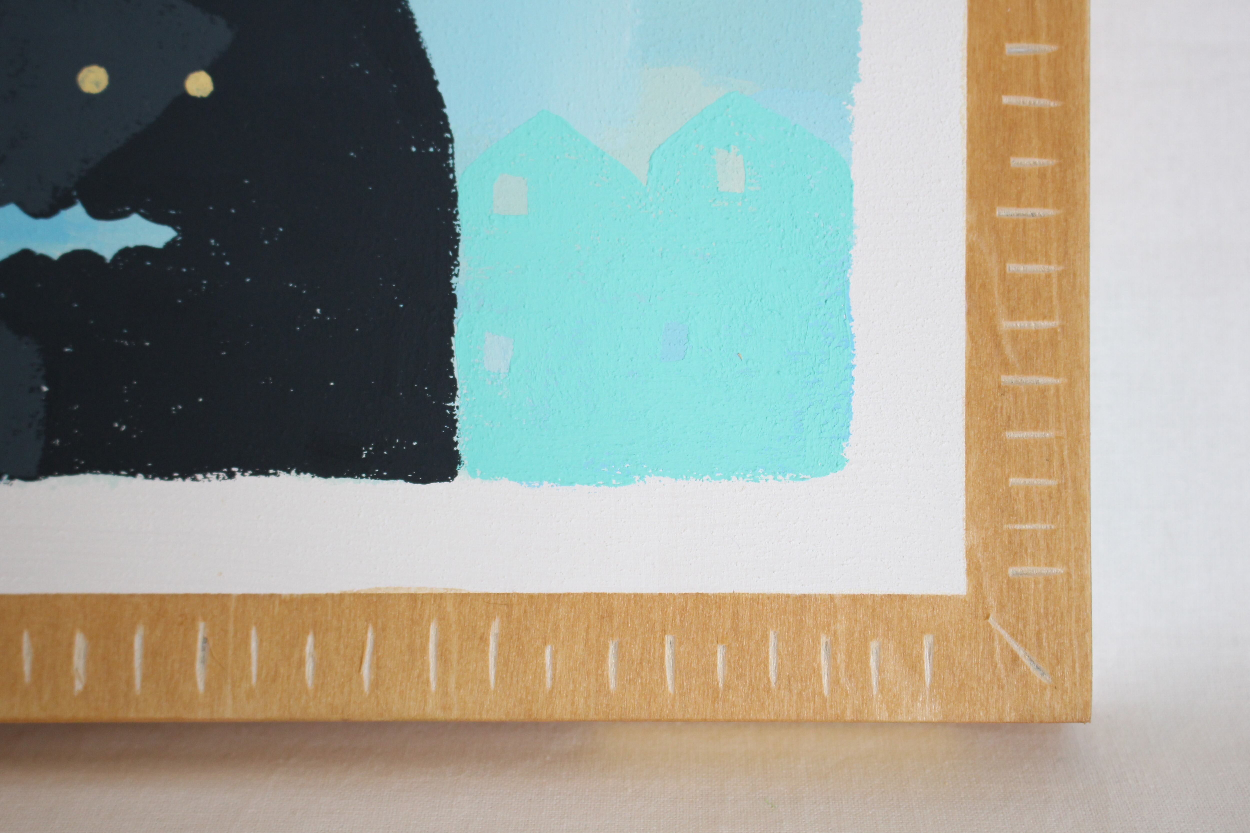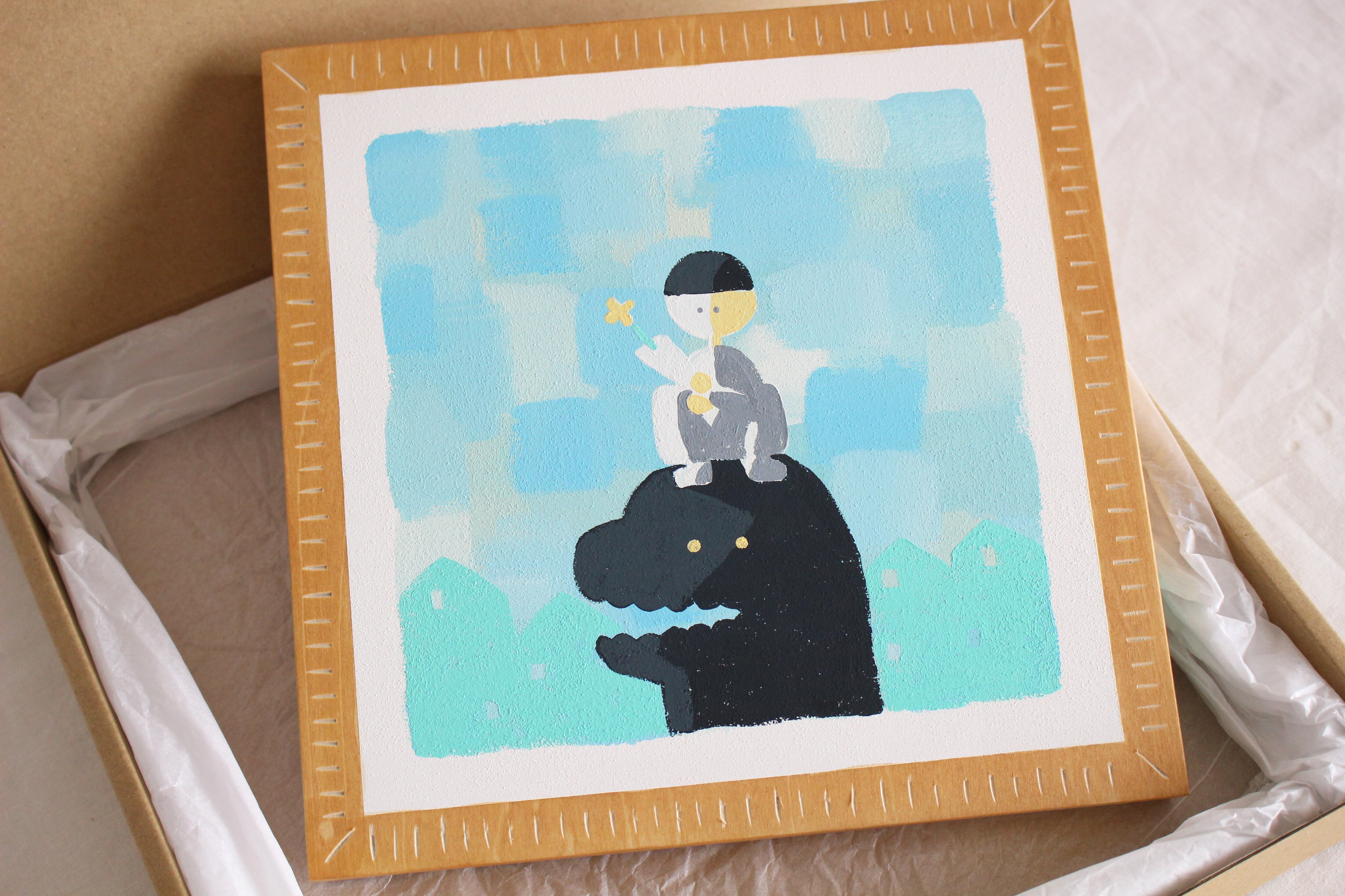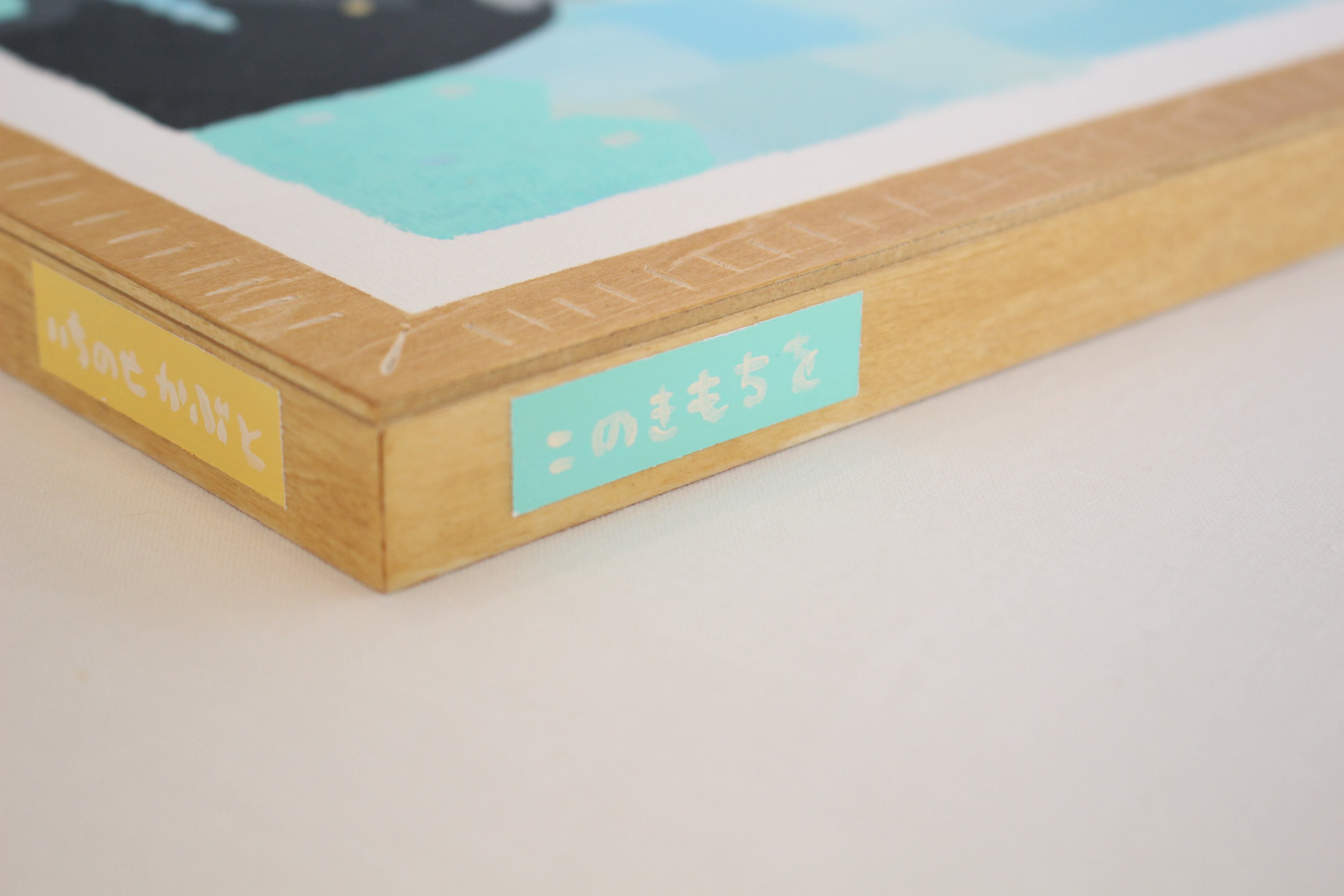 絵の表面に保護用のニスを塗りコーティングしていますが、鋭利なものや色を付着させるものを近づけないようお願いいたします。