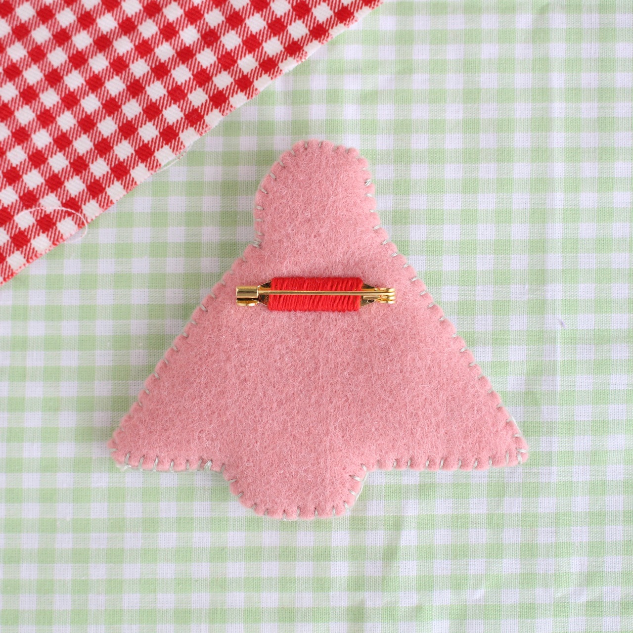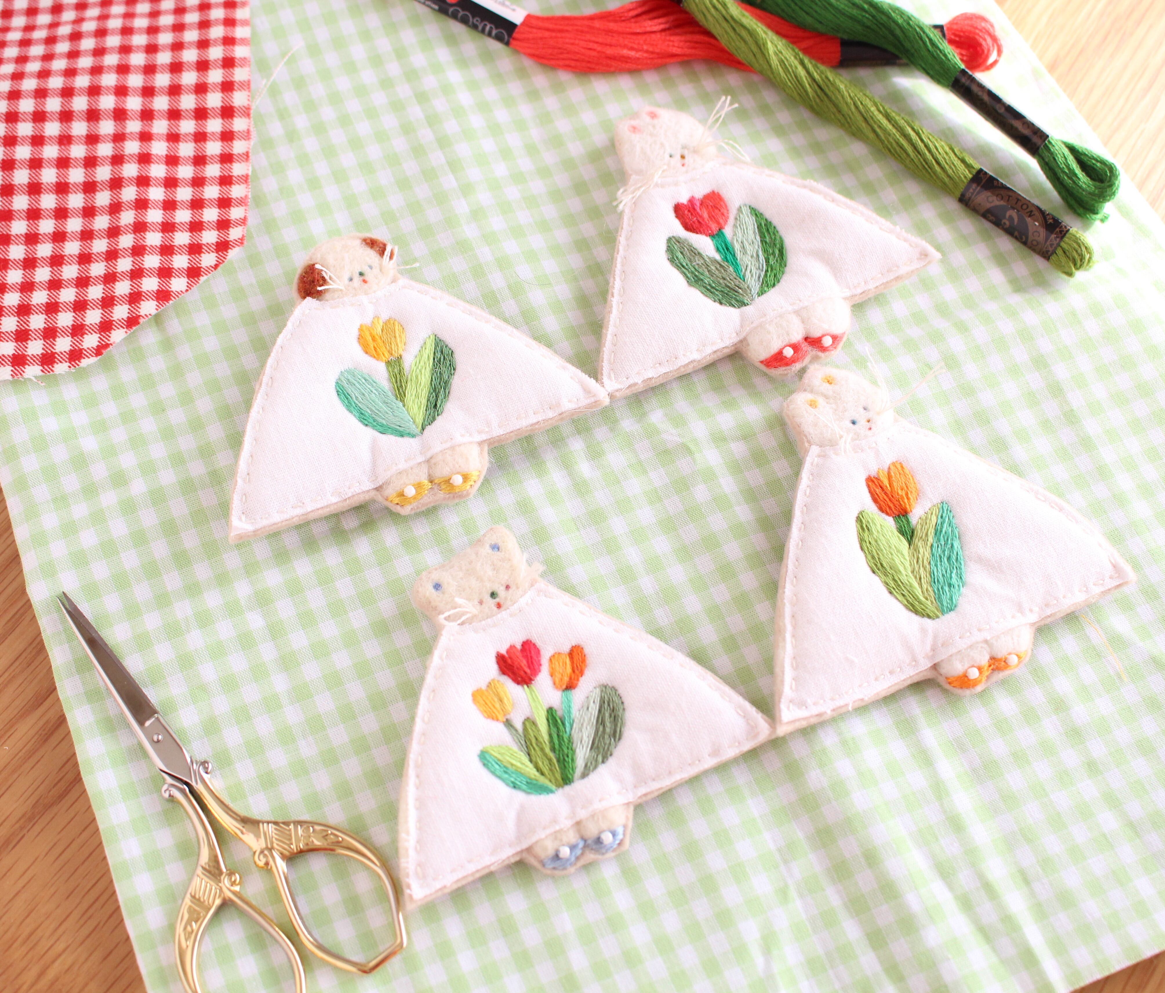 大きなtulipの刺繍をした真っ白いワンピースのうさぎのbroochです。