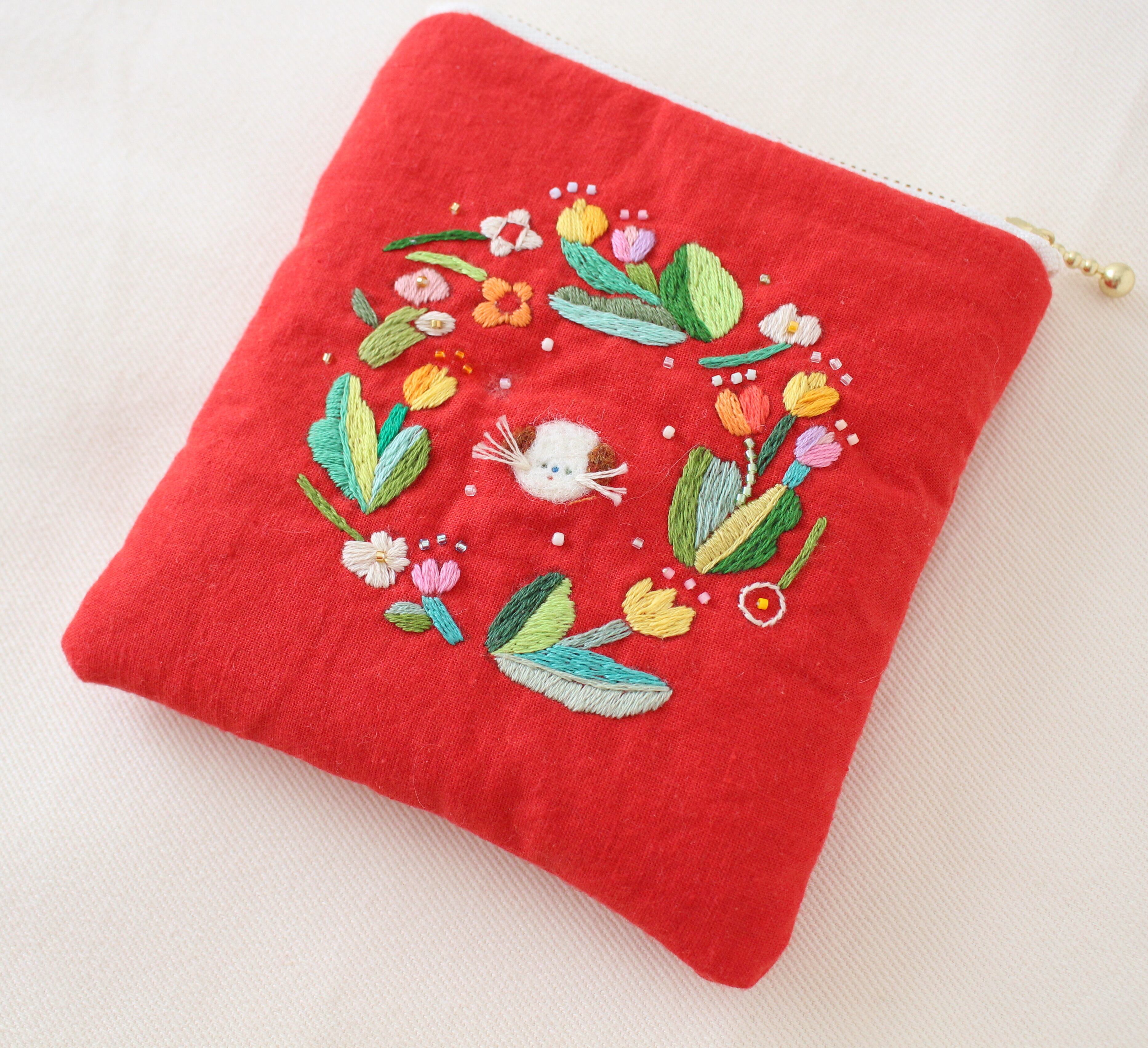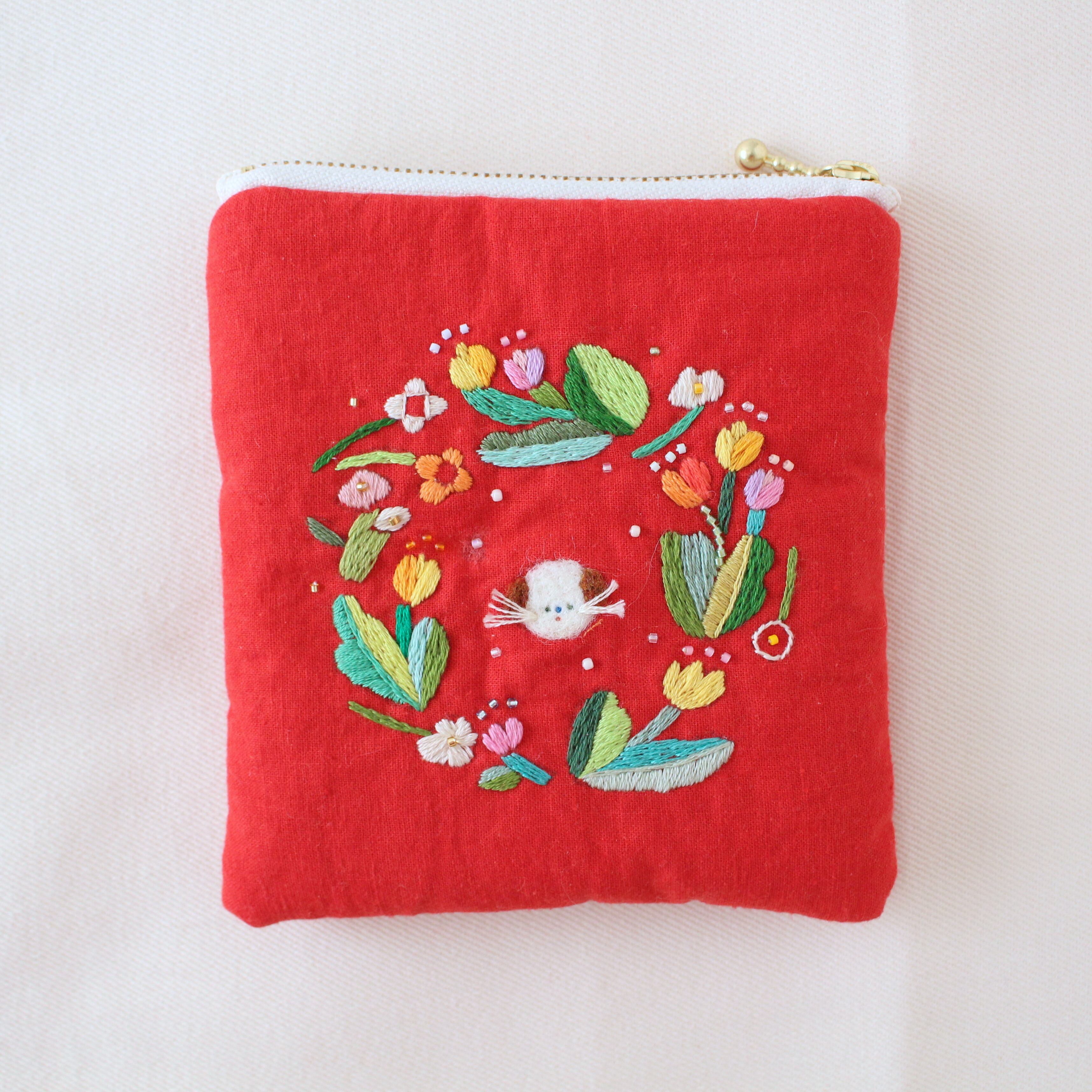 tulipとわんこの赤いpouch