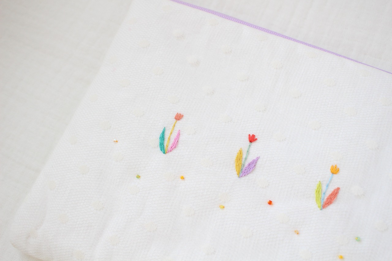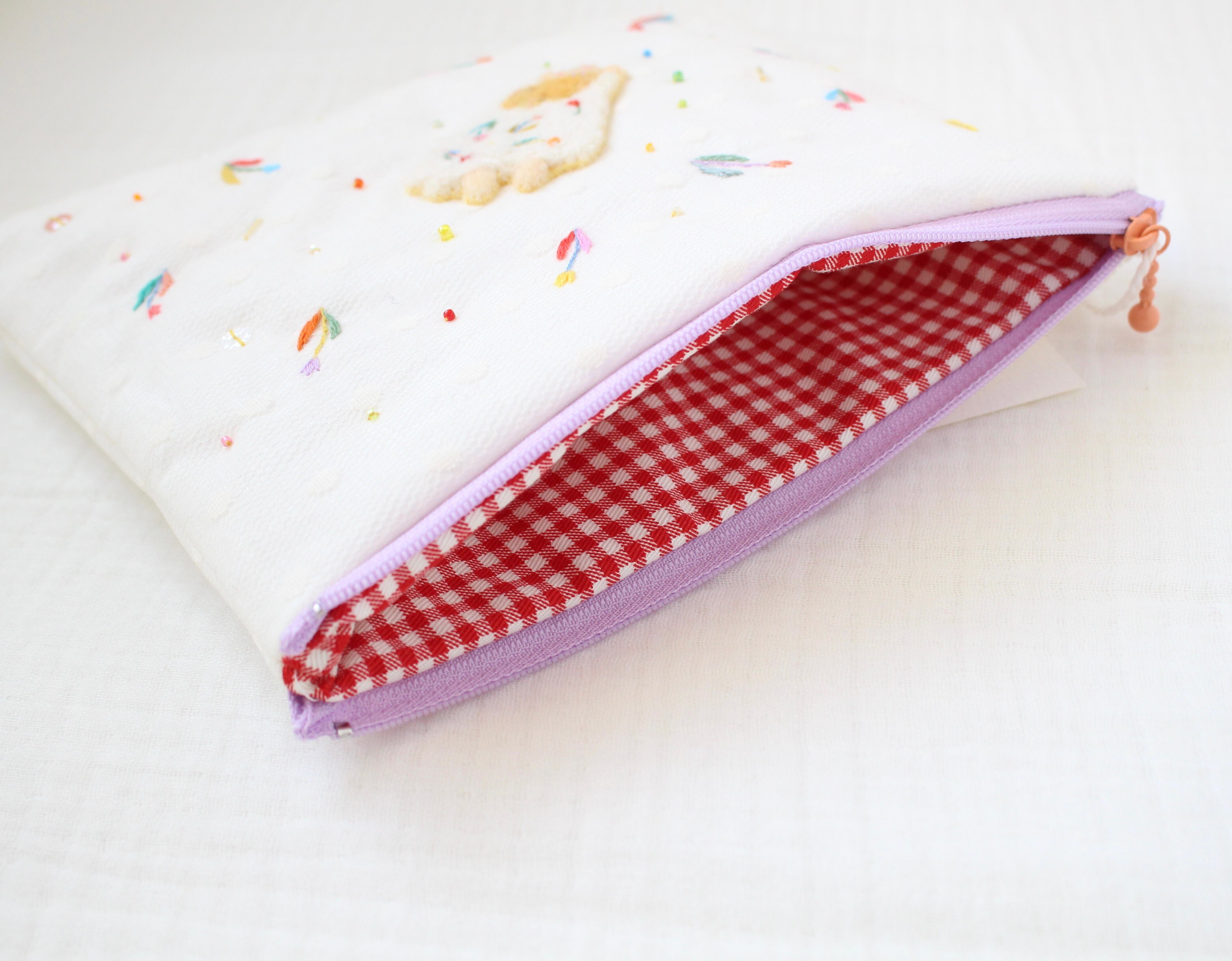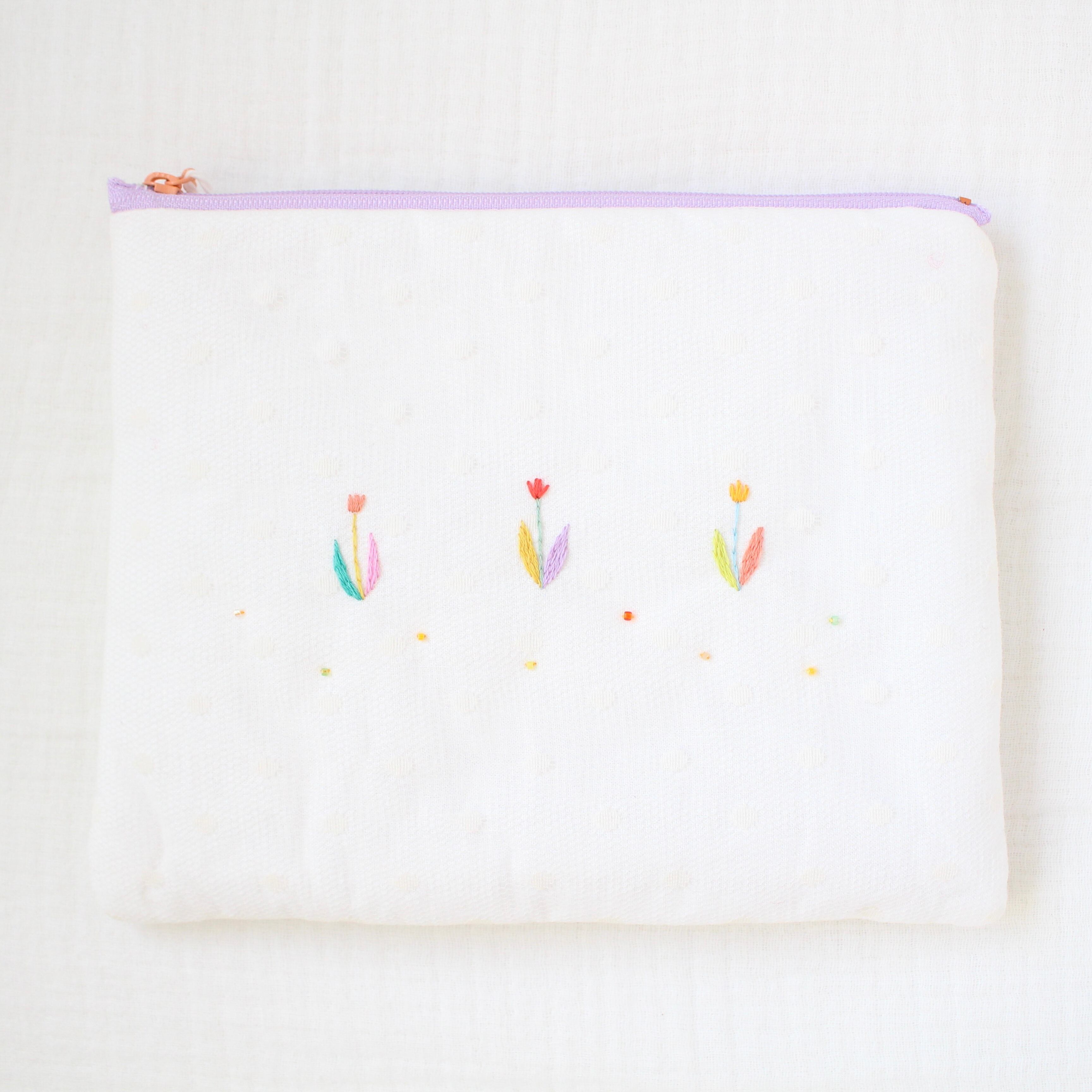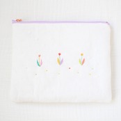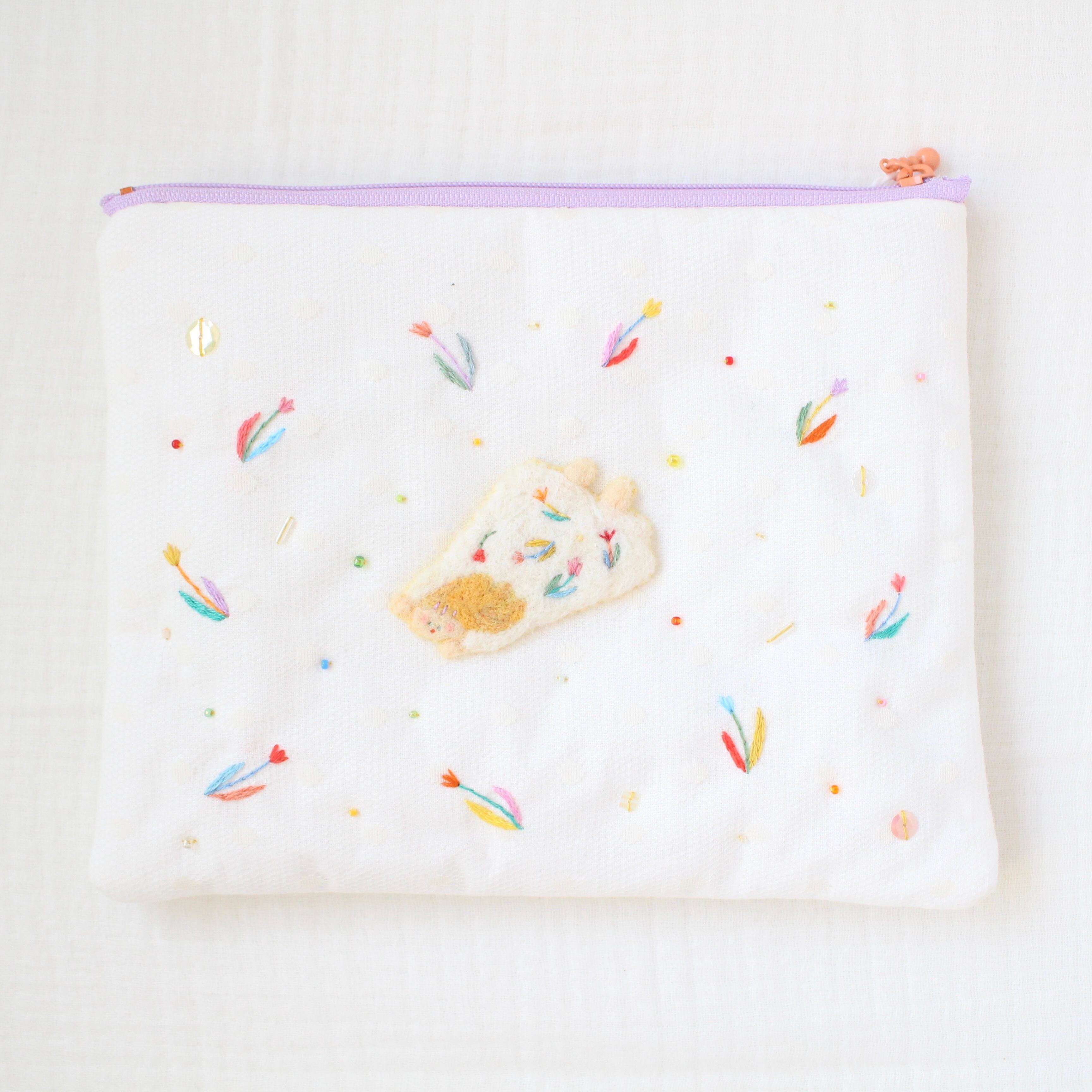 カラフルなチューリップと空をとんでいるおんなのこのpouchです♪