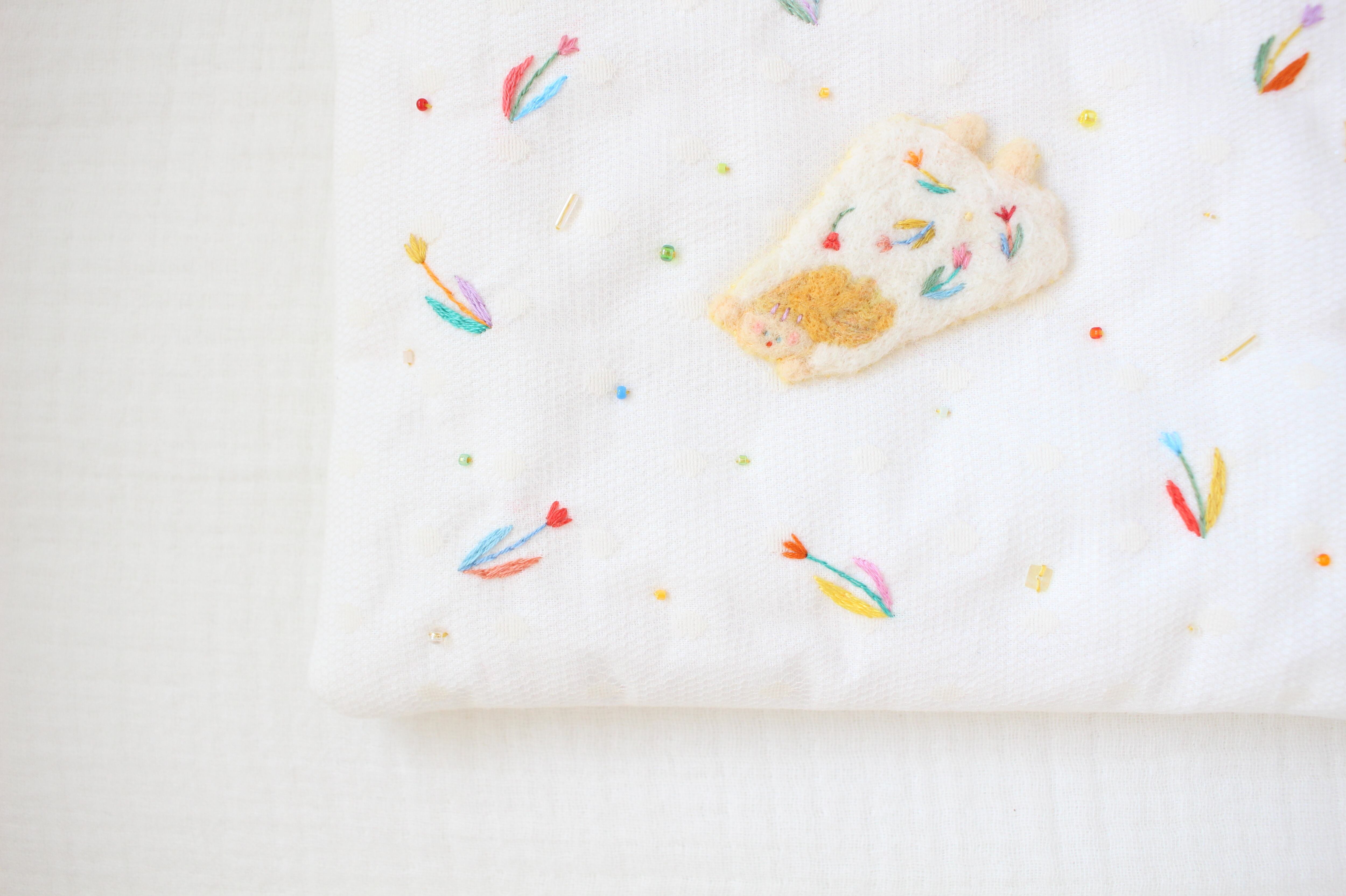 ◯素材:羊毛フェルト、刺繍糸、ビーズ