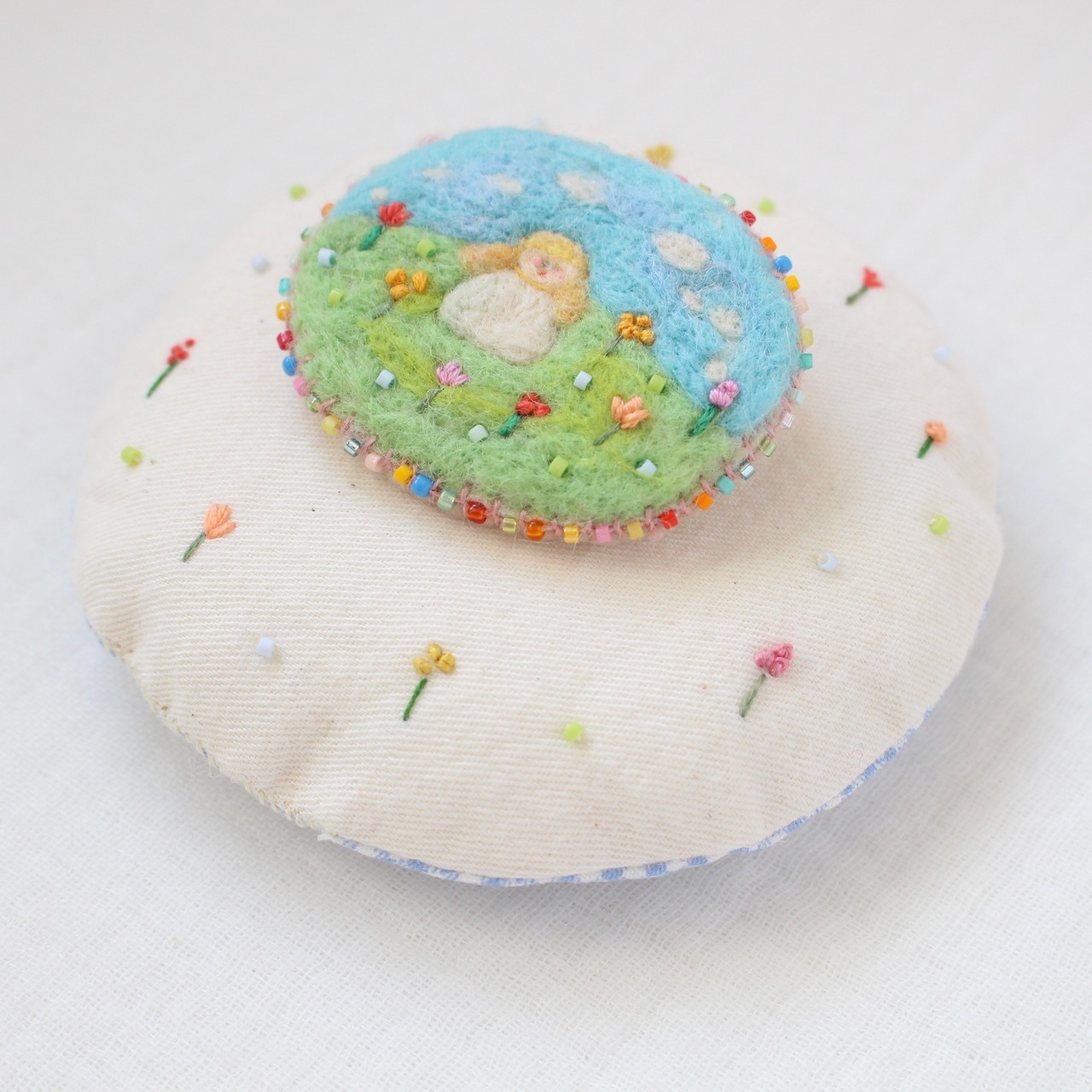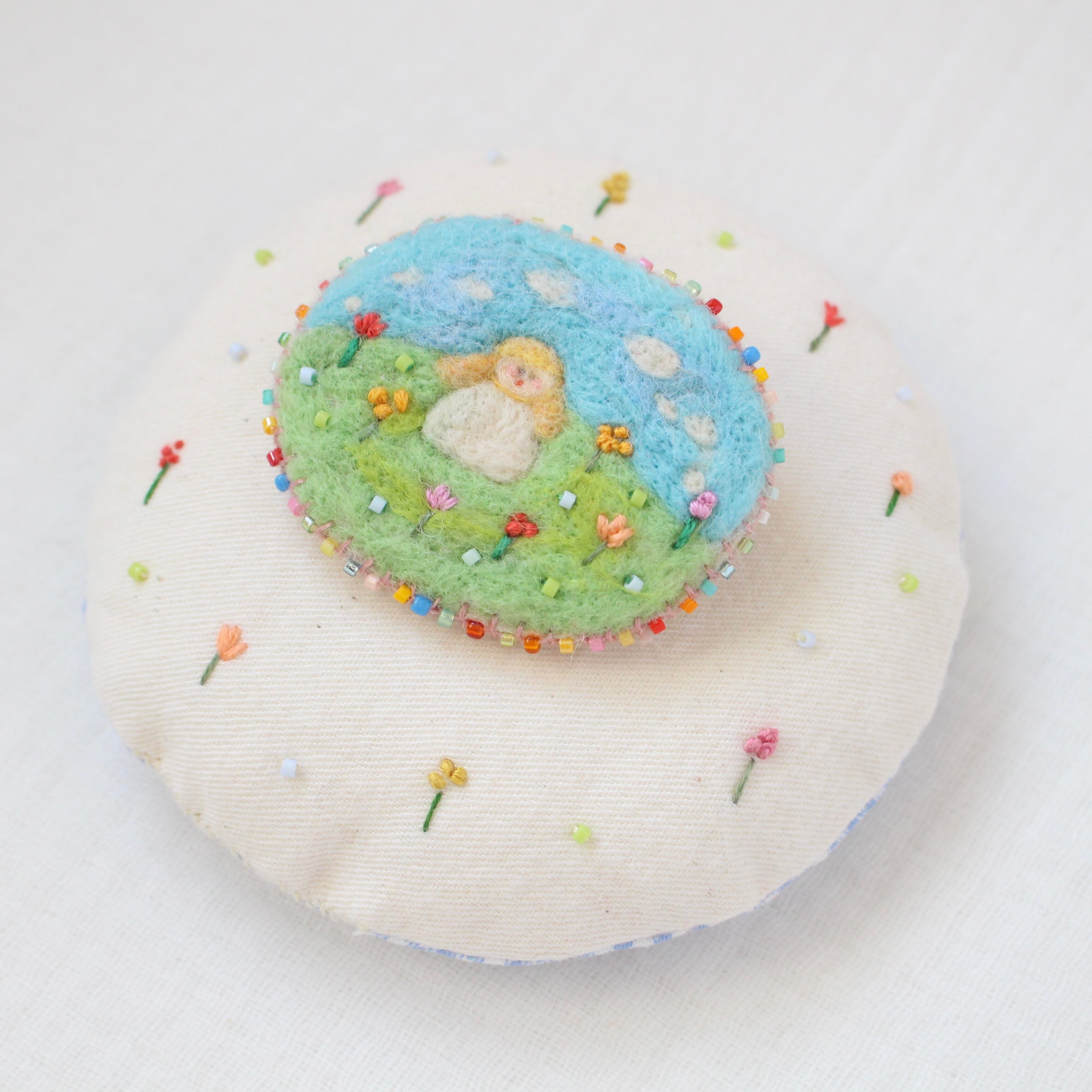 ◯素材:羊毛フェルト、刺繍糸、ビーズ