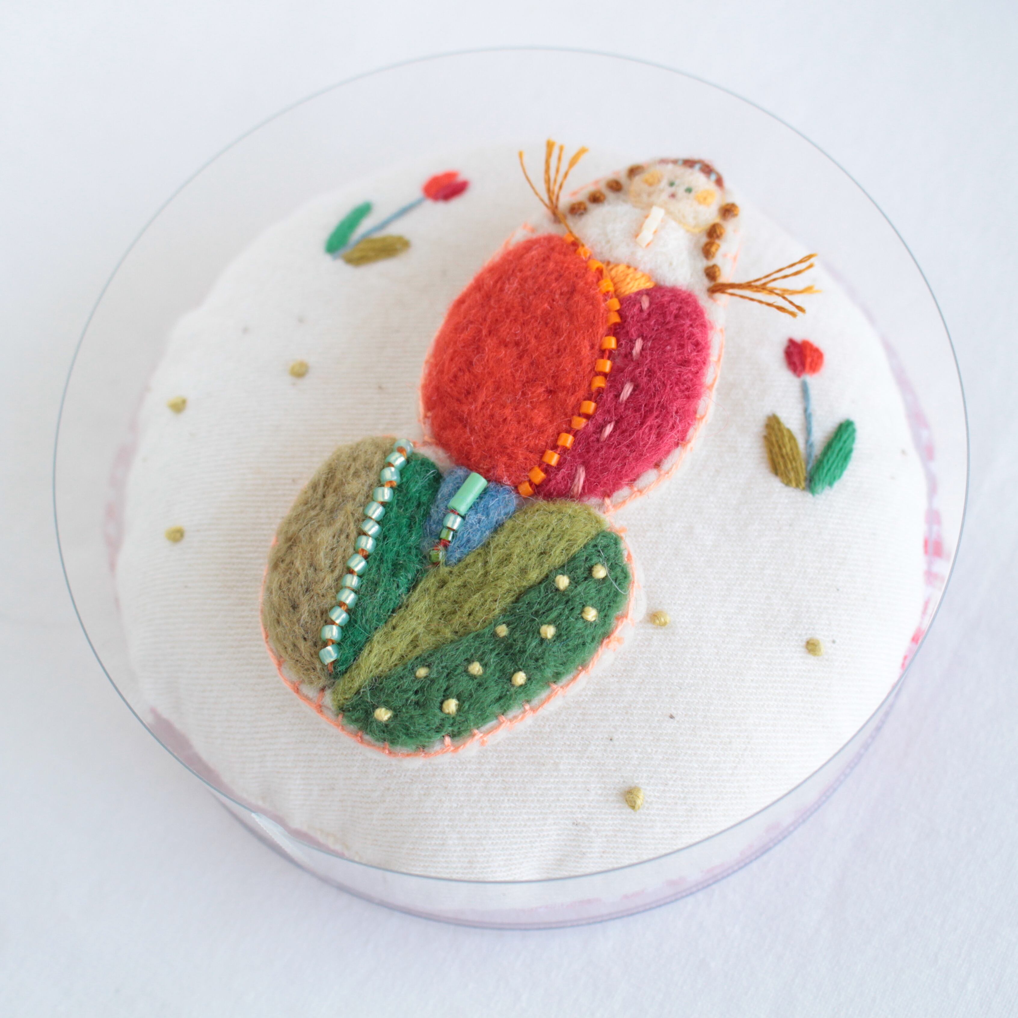 ◯素材:羊毛フェルト、刺繍糸、ビーズ