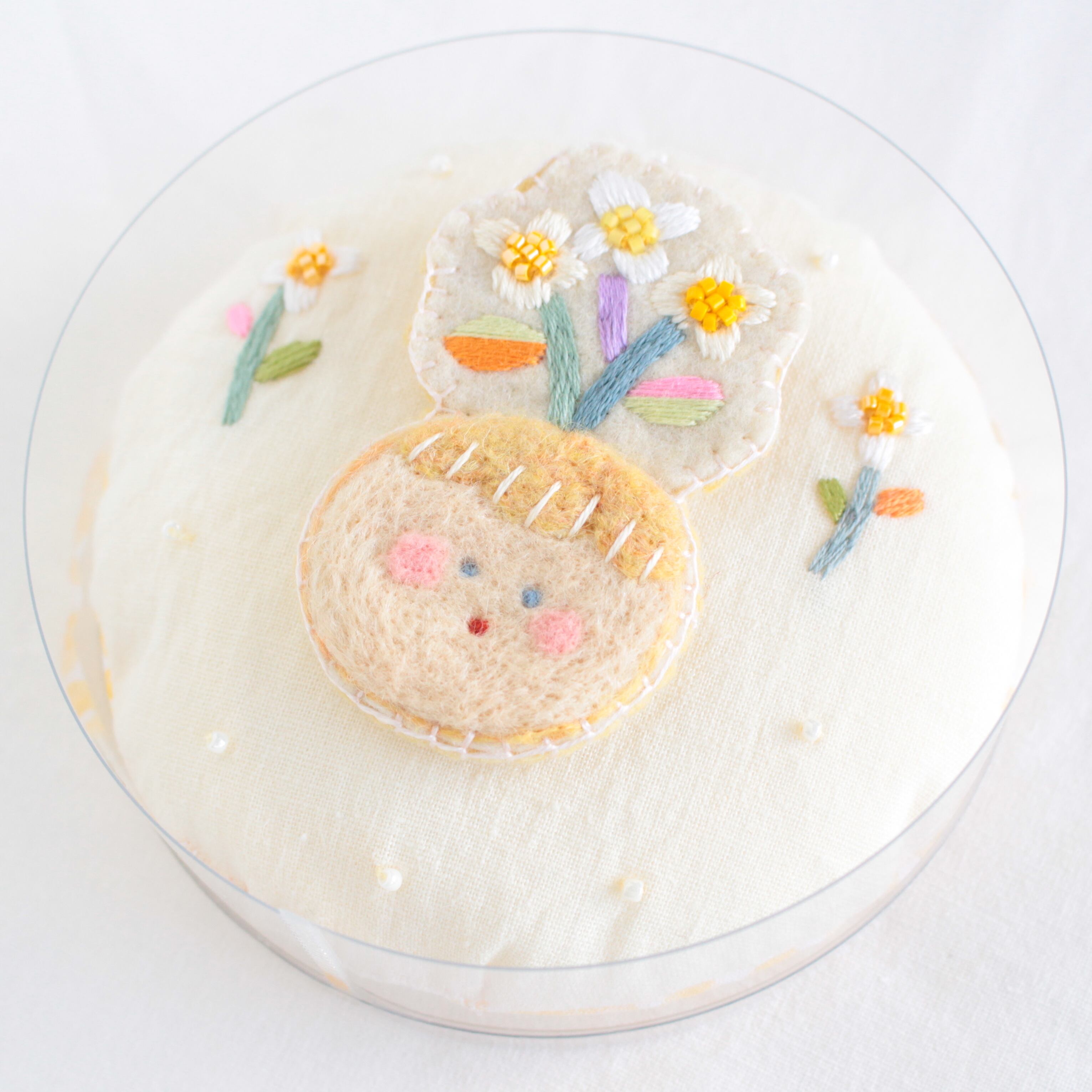 ◯素材:羊毛フェルト、刺繍糸、ビーズ