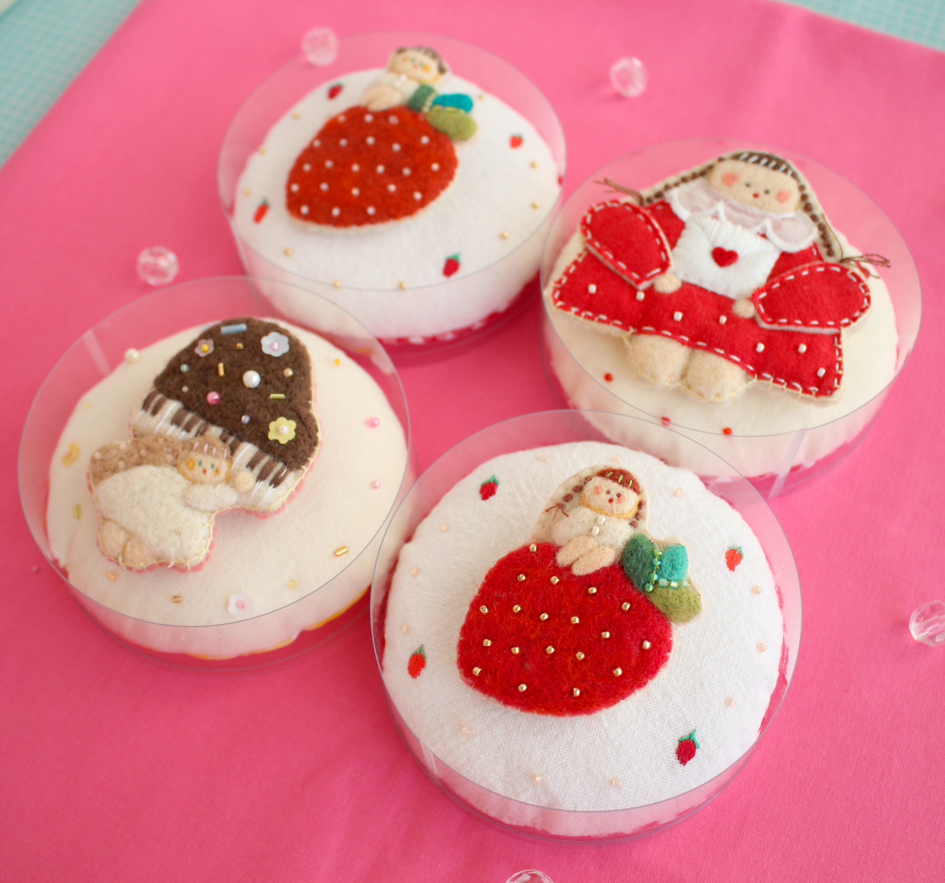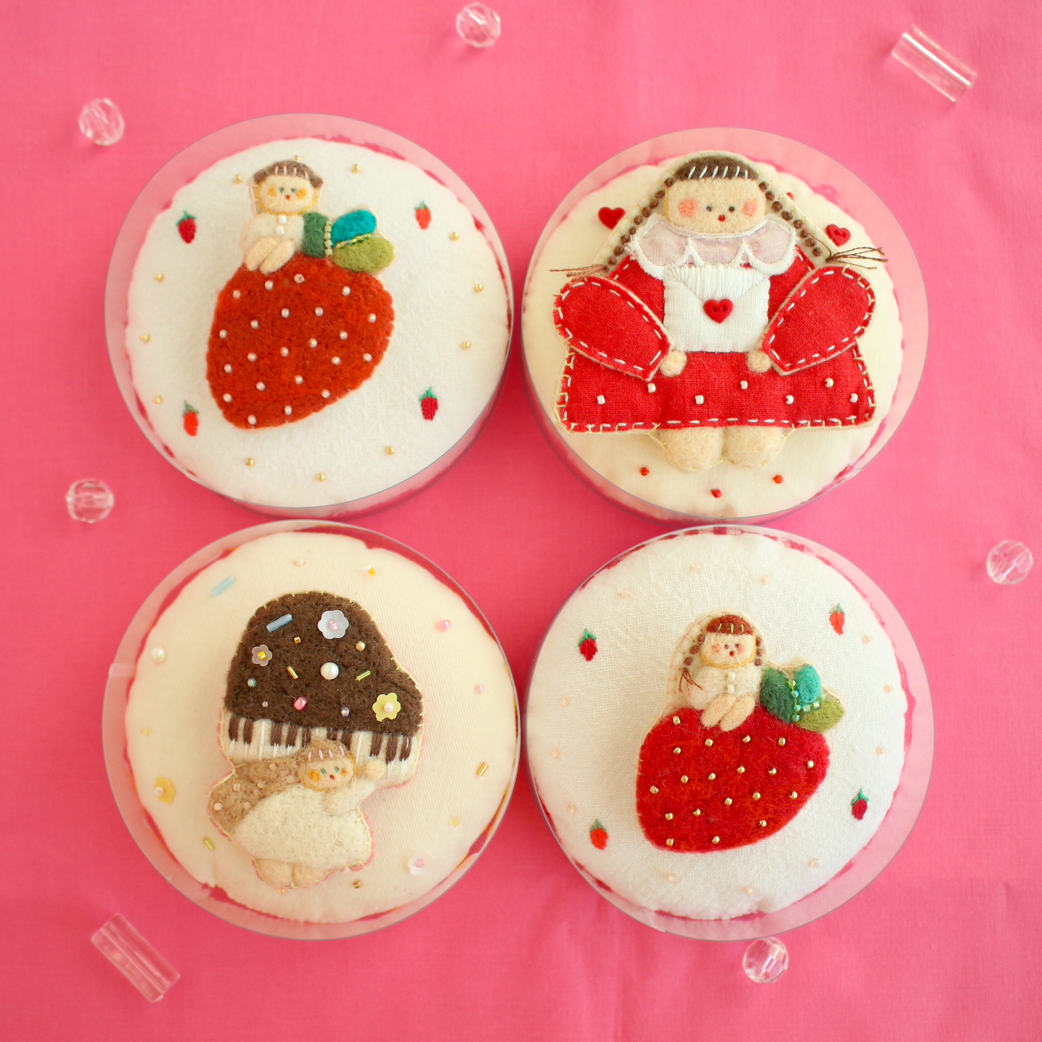 いろいろbrooch《いちごのようせいちゃん/ラブレターを届けるおんなのこ/ピアノとようせいちゃん》