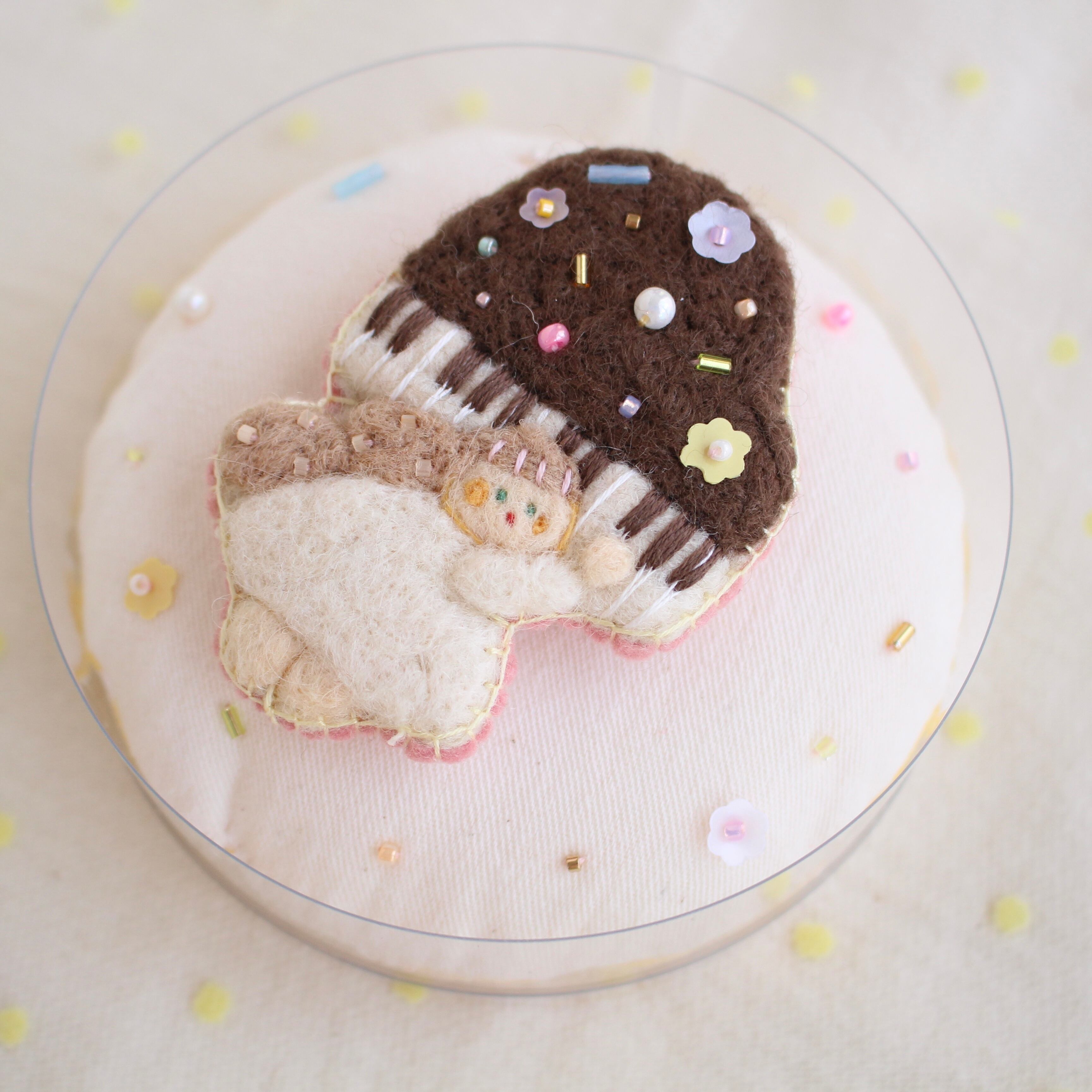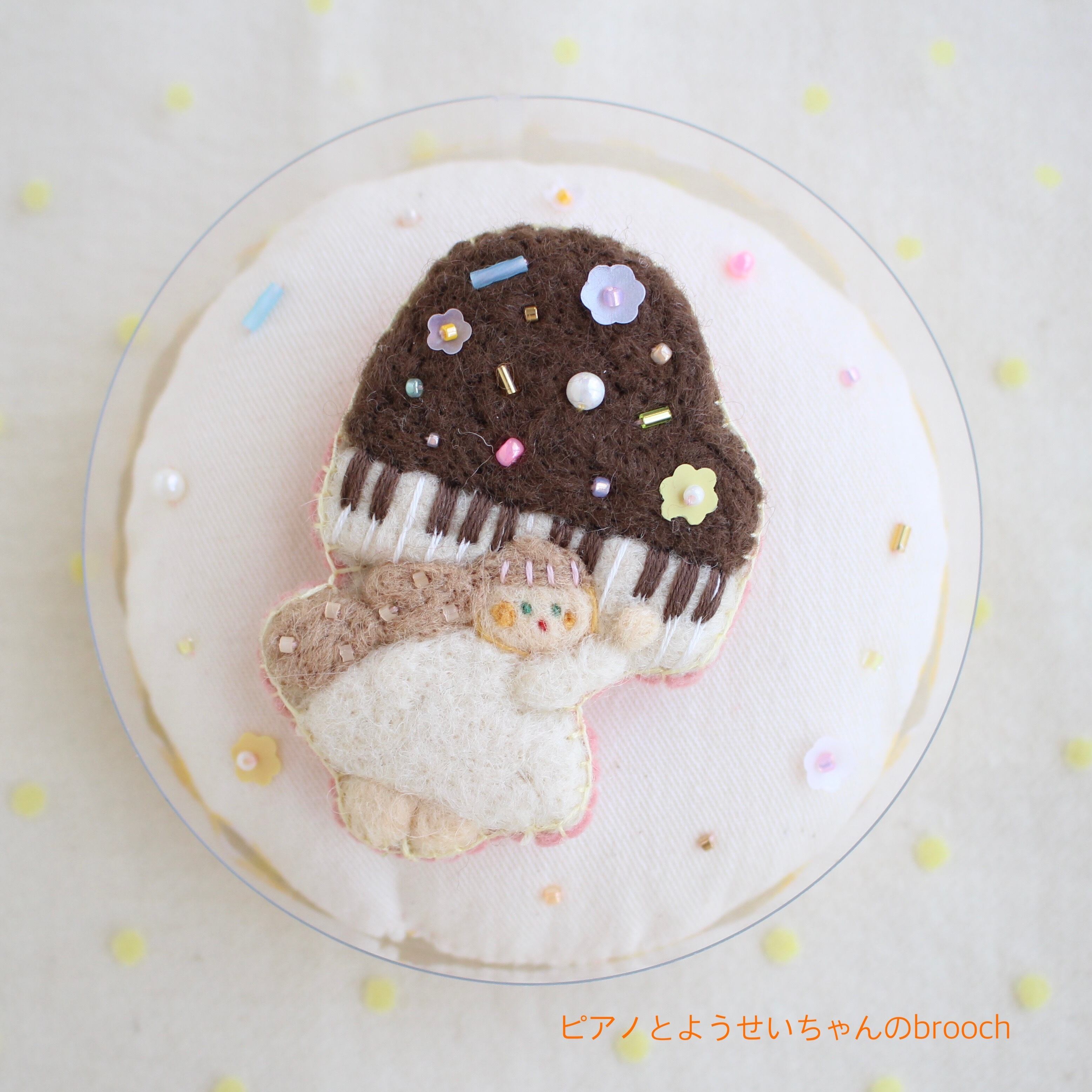 ピアノとようせいちゃんのbrooch 縦 約7,2cm 横 約5,5cm