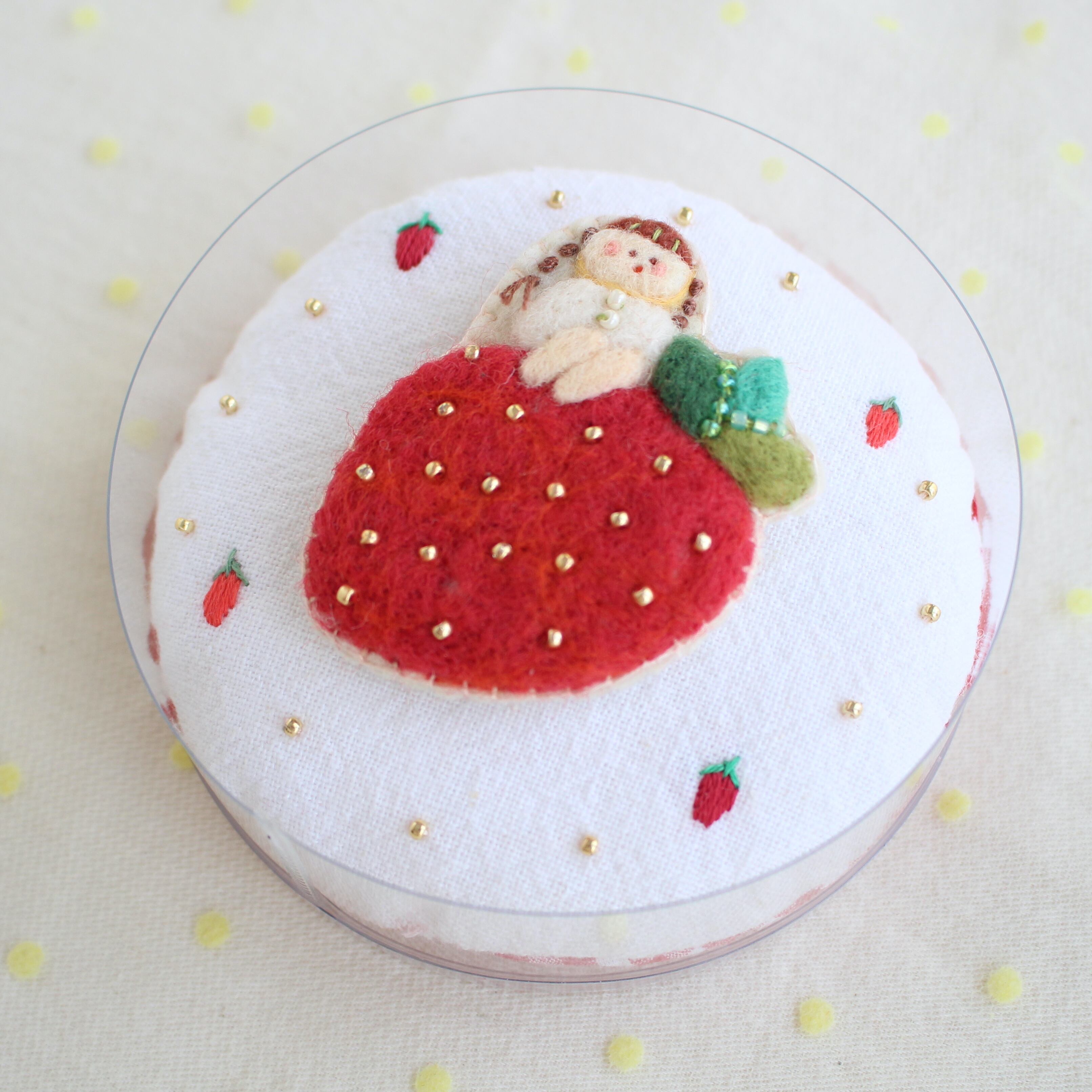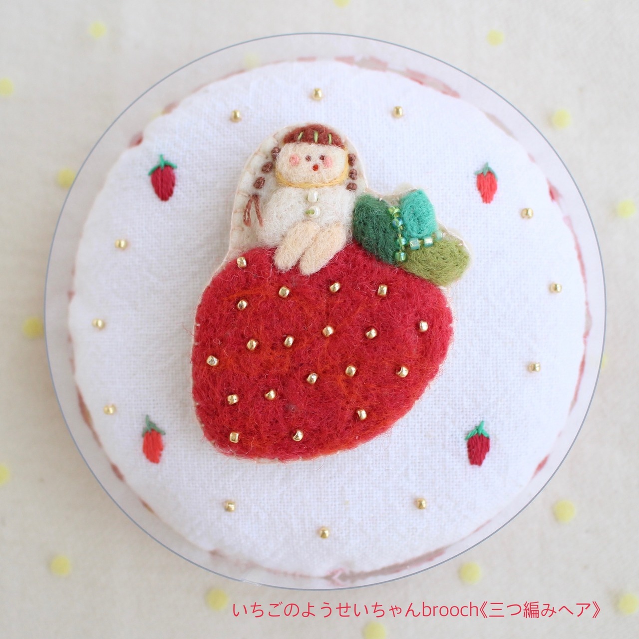 いちごのようせいちゃんbrooch《三つ編みヘアー》縦 約6cm 横 約5,3cm
