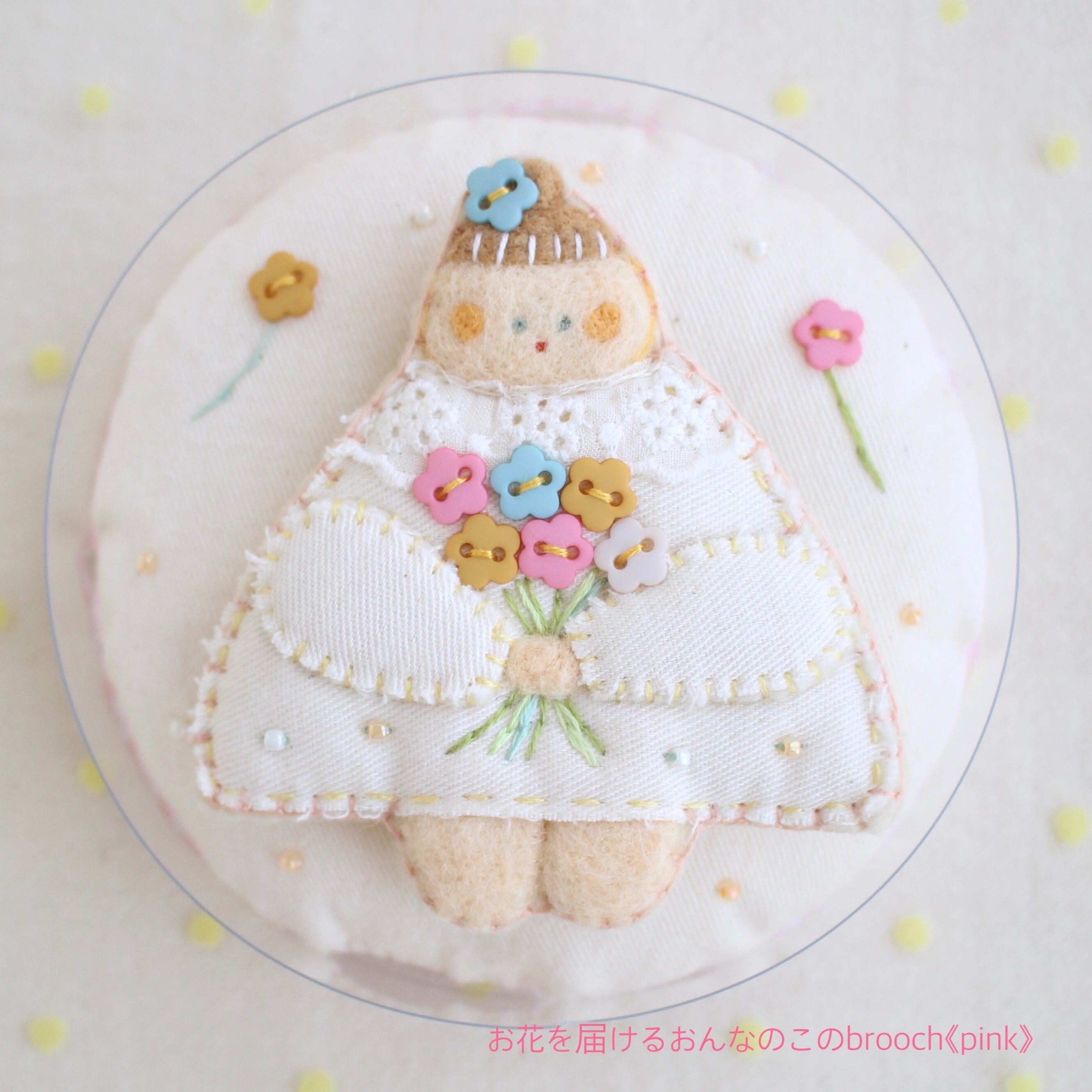 お花を届けるおんなのこのbrooch《pink》縦 約8cm 横 約7,4cm