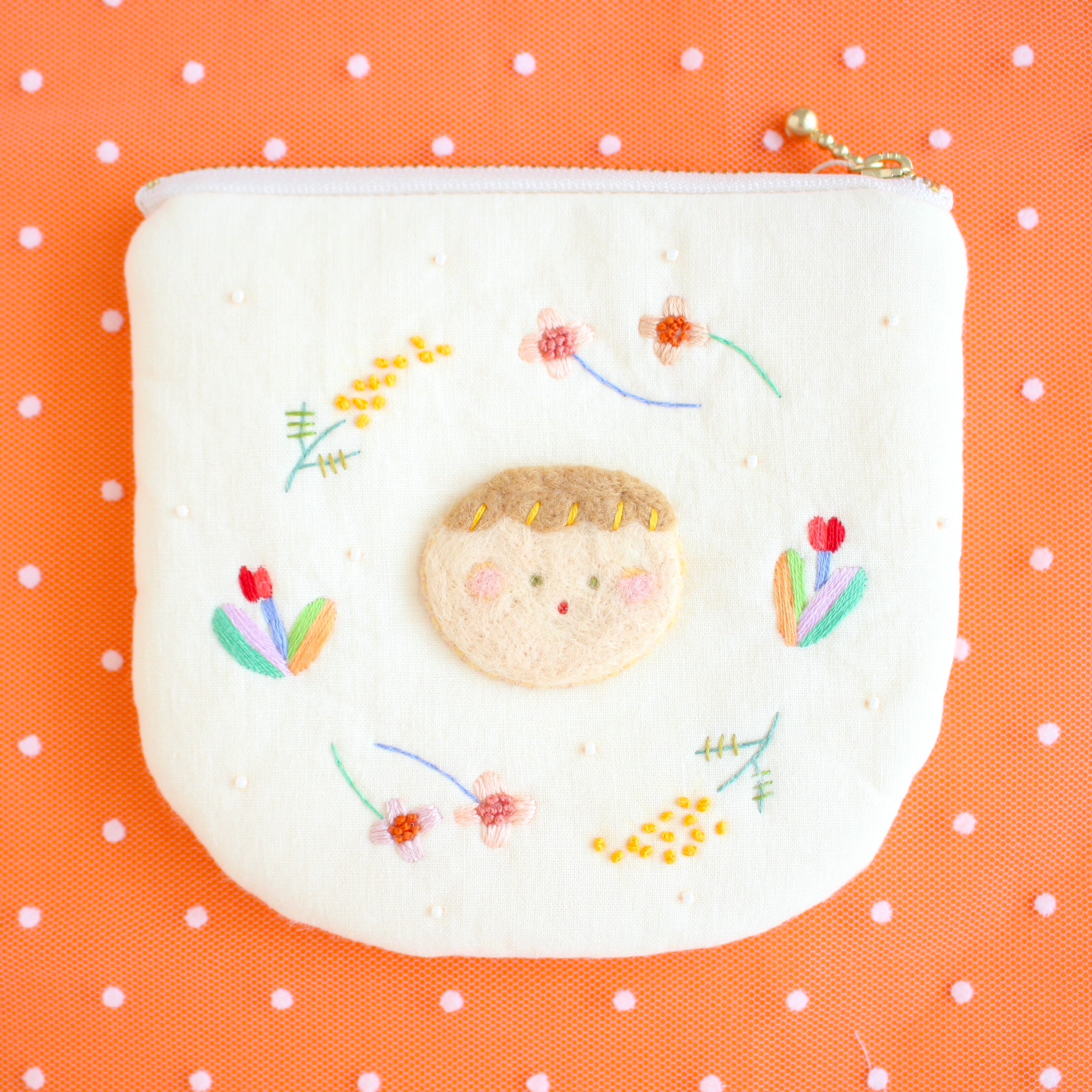 カラフルでいろいろなお花の刺繍とまんまるおおかおの