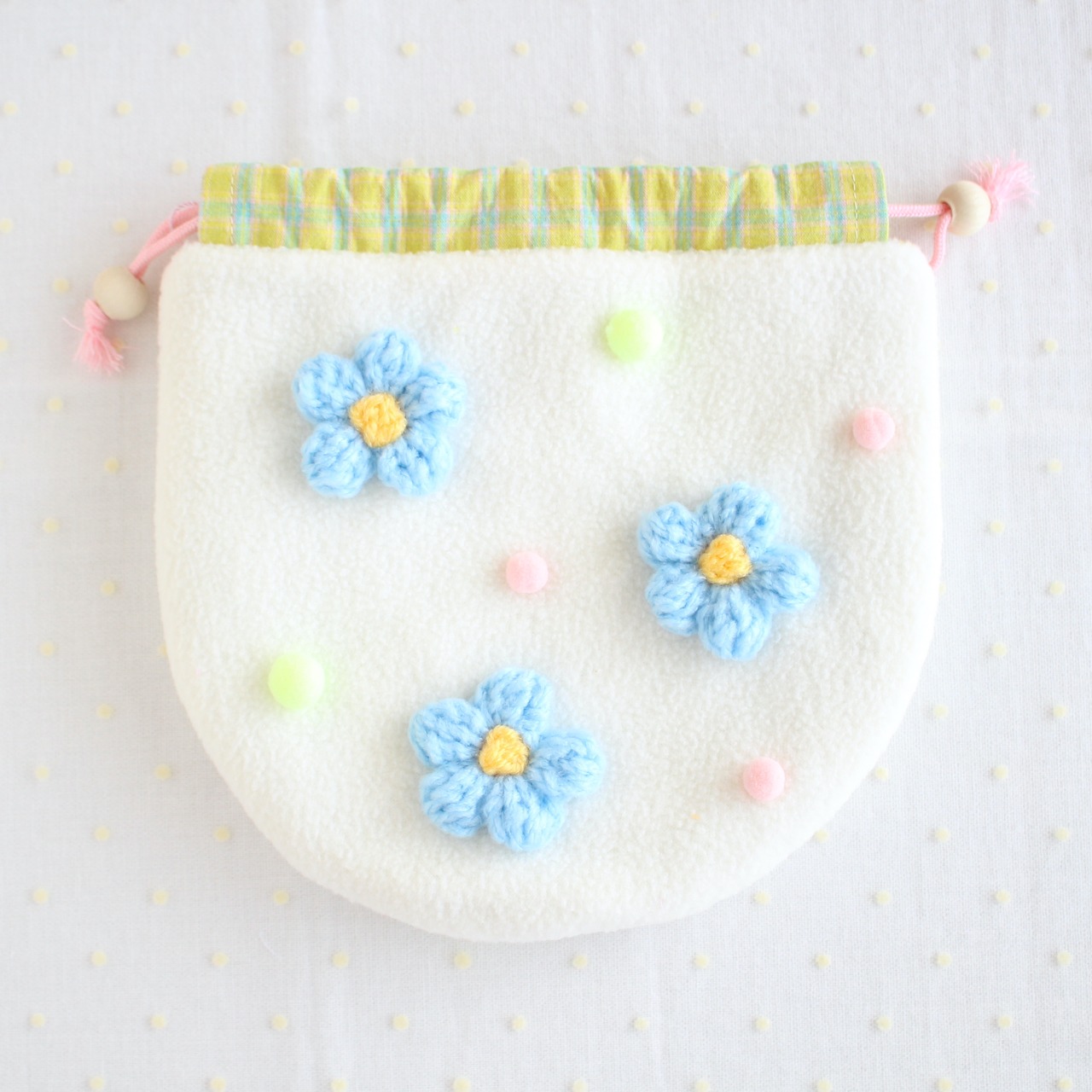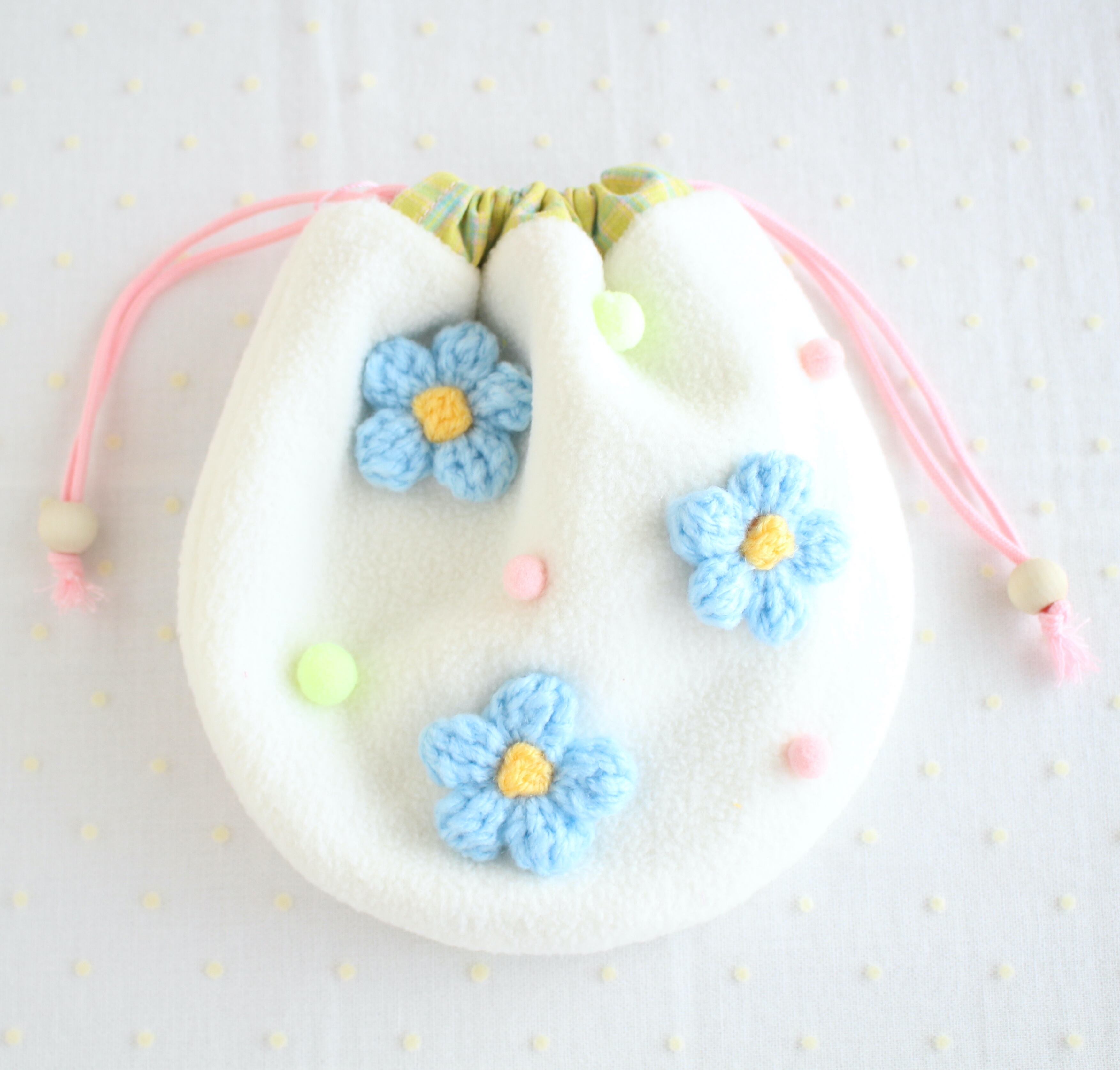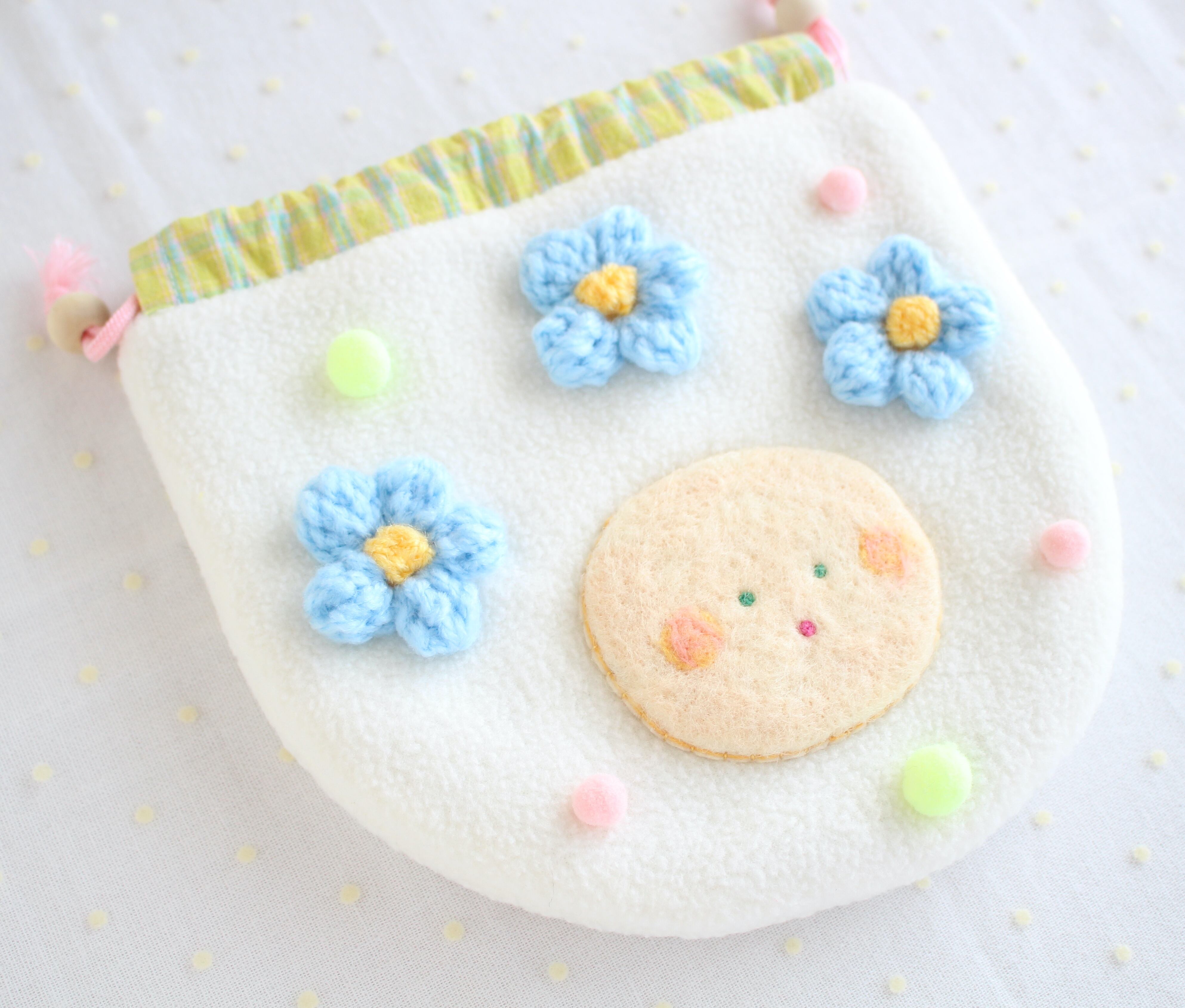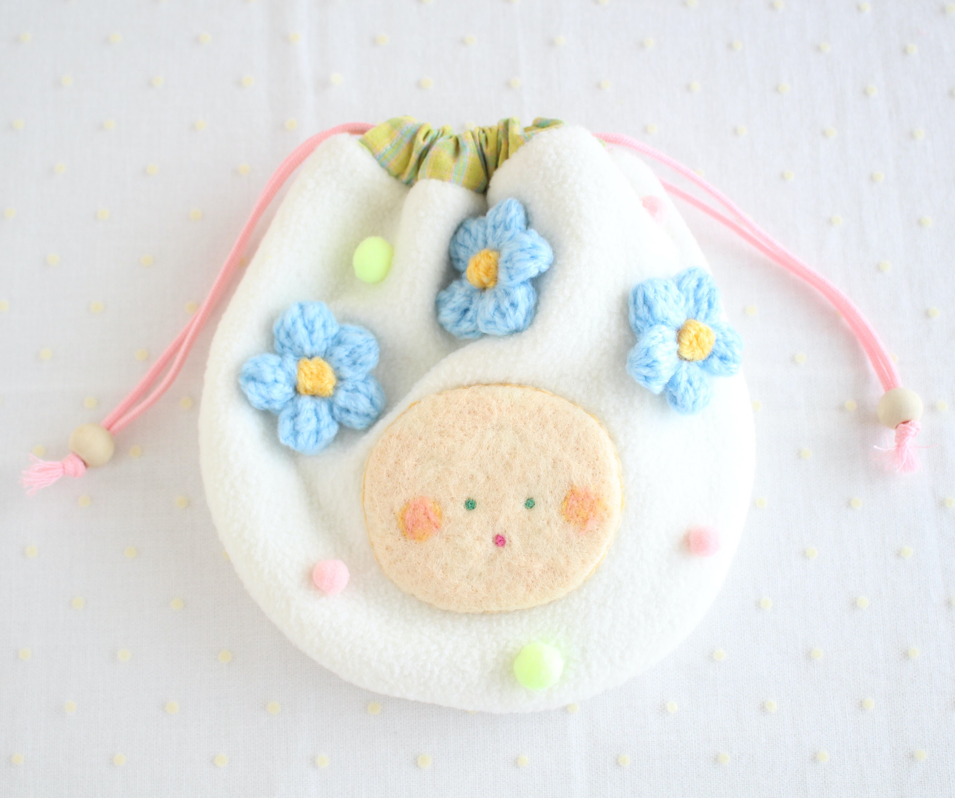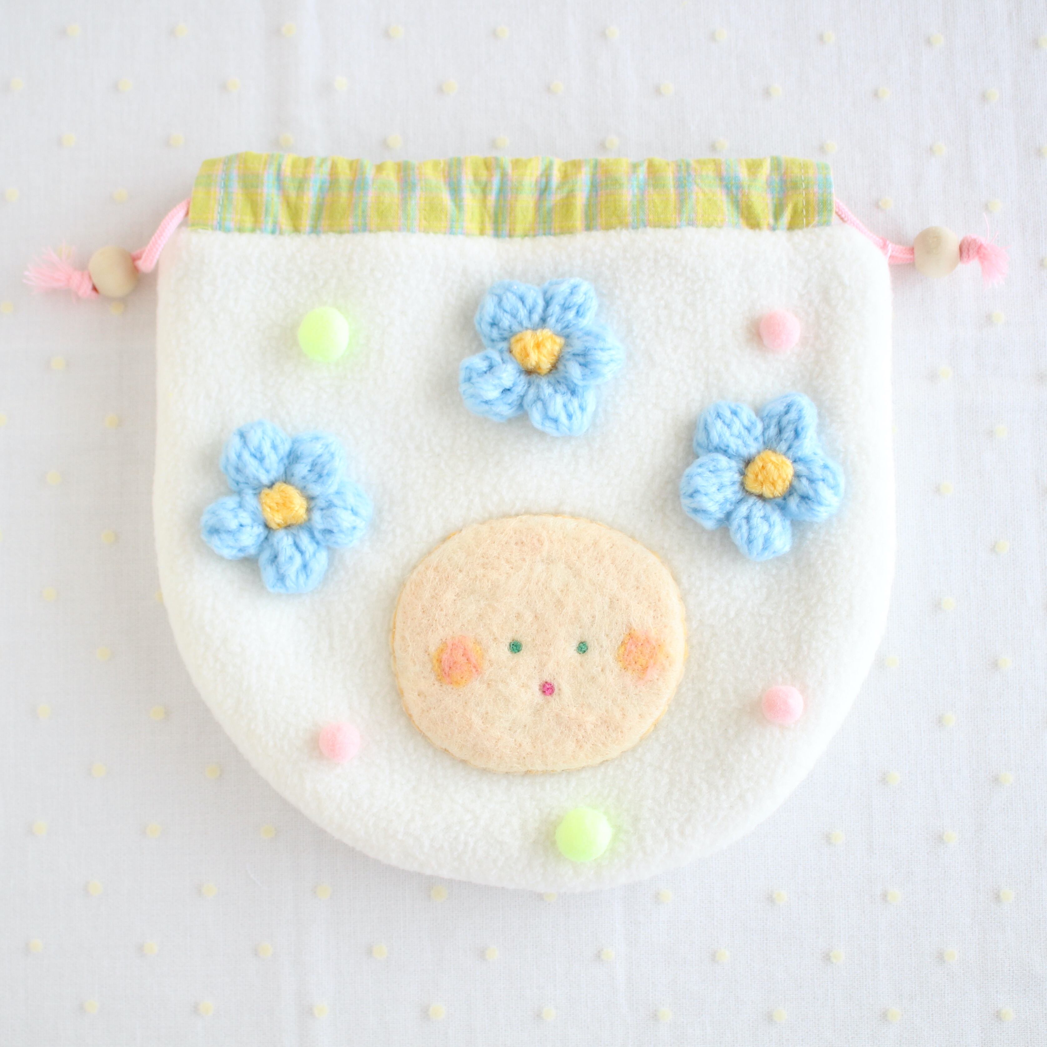 moёオリジナルのキャラクター《mof》のお花の巾着です。