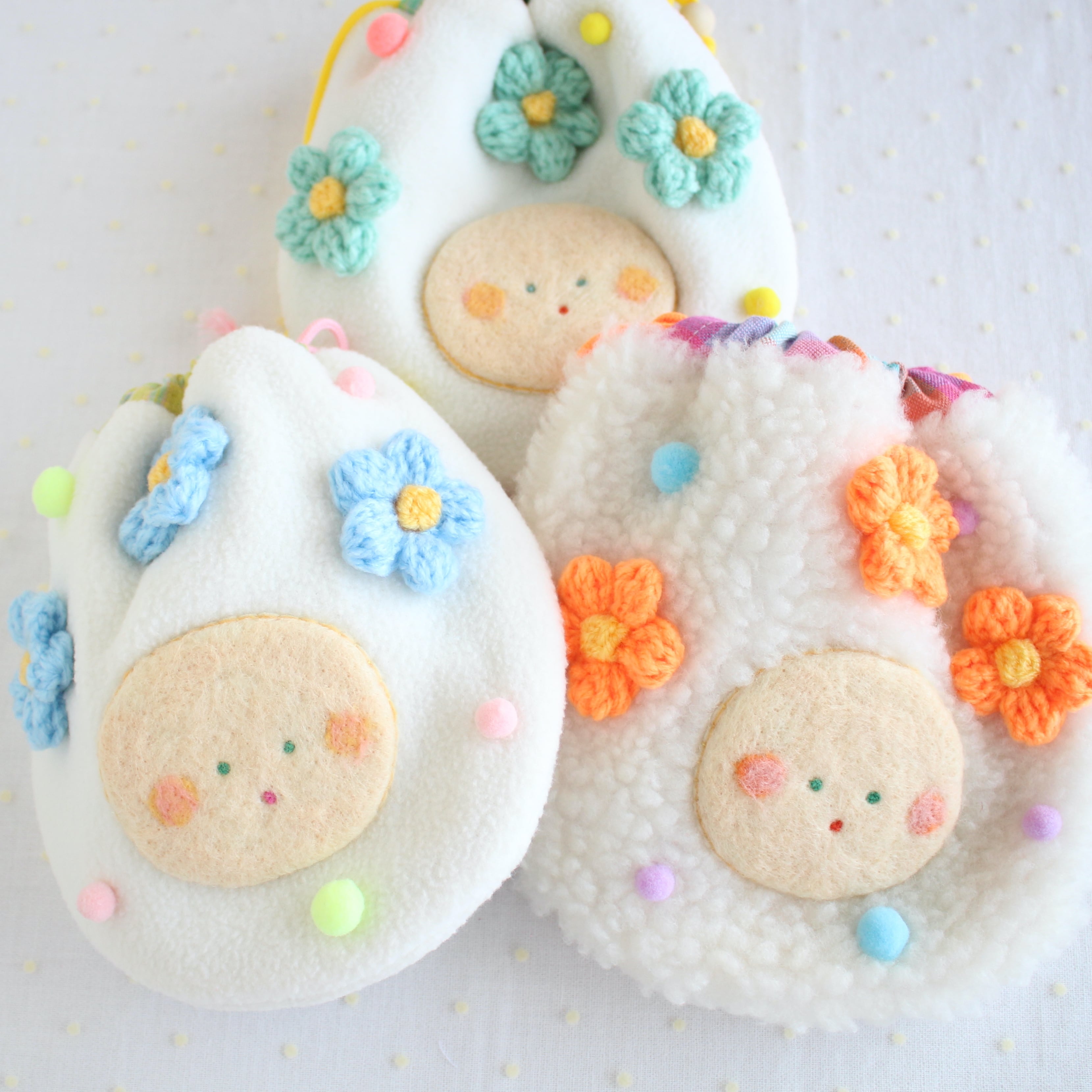 ◯素材:羊毛フェルト、フェルト、毛糸、生地(ボア)